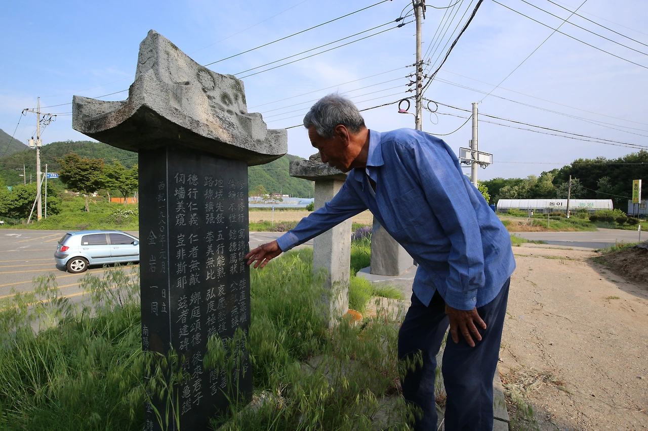 금암1리의 본래 이름은 ‘압구정 마을’. 마을로 향하는 길 입구에 자리 잡은 커다란 비석에는 마을 이름의 유래를 설명하는 한시가 새겨져 있다. 이곳에서 평생 살아온 오교탁(79) 씨가 직접 지은 한시다.