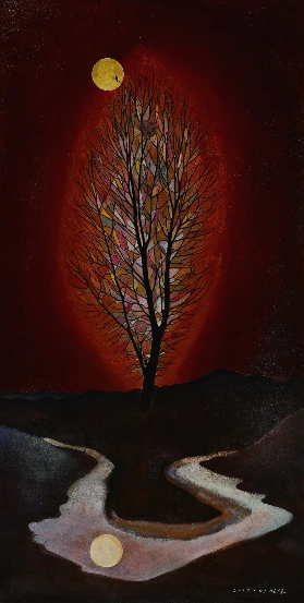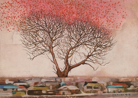 빨갛다. 붉고 따뜻한 기운 속에 나무가 우뚝 서 있다.
