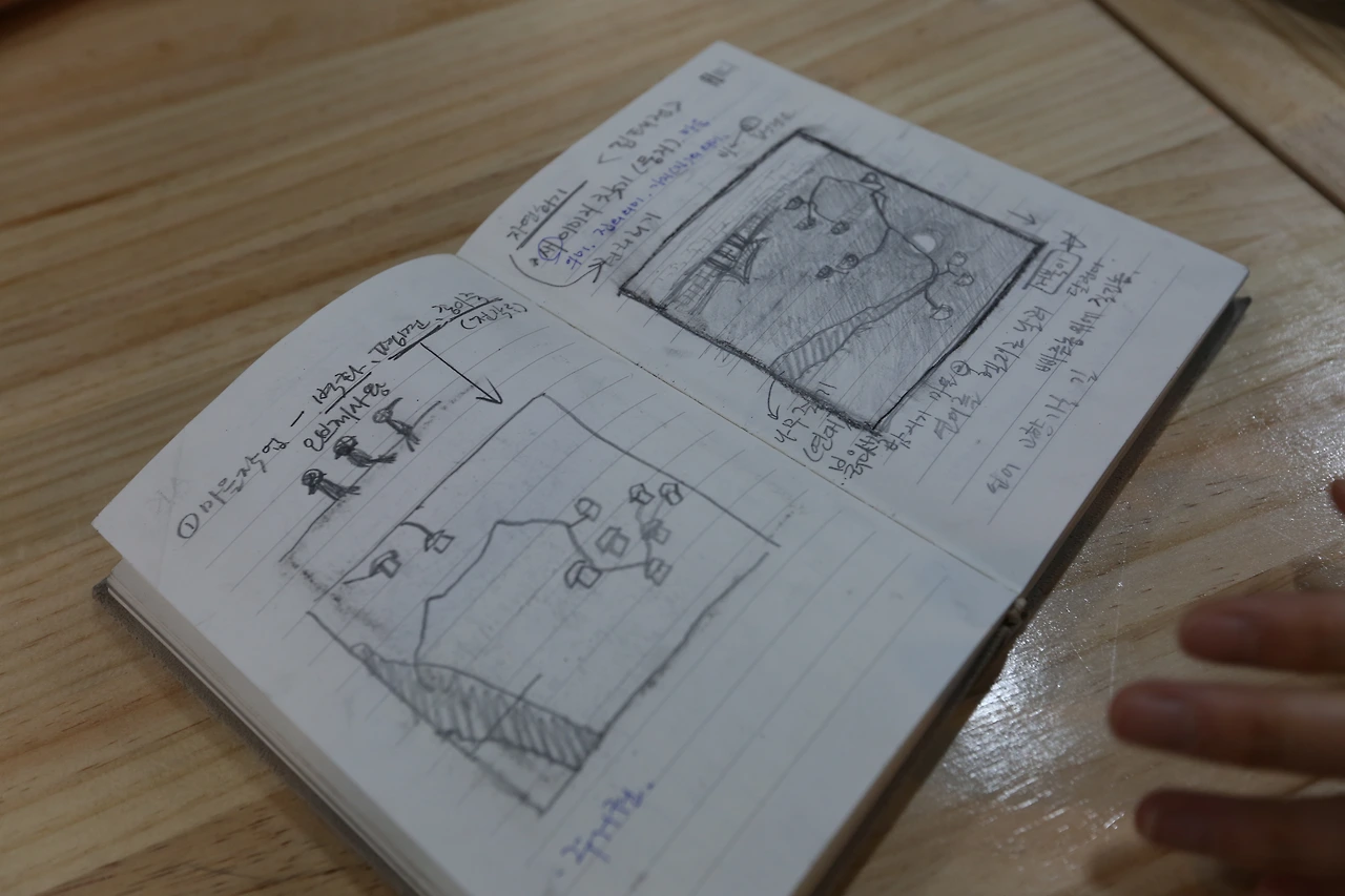 그는 옥천 말고도 다른 마을을 배경으로 한 그림들을 그려왔다. 거창한 계기가 있었던 건 아니다. 시작은 어릴 적 고향 충남 온양에서 친구들과 놀던 기억, 지금 서울시 성북구 삼선동에 살고 있는 시간들에서부터였다. “제가 살고 있는 동네에서 사람들과 인사 나누고 마을 벽화도 그리면서 마을에 관심을 갖기 시작했어요. 어렸을 때 살던 고향에서의 기억과 지금 사는 마을이 크게 다르지 않은 것 같아요.”