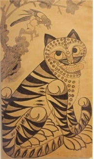 그런데 조선 후기로 가면서 점차 호랑이 도상은 익살스럽고 해학적인 이미지로 변화한다. 아래 그림 속 호랑이는 우리가 위에서 보았던 호랑이 도상과는 확연히 차이 난다. 도상 속 호랑이는 위엄이 있다기보다는 혀를 내밀고 눈동자를 굴리는 등 익살스러운 얼굴로 그려져 있다. 심지어 까치는 위치적으로 위쪽에 그려져 호랑이를 내려다 보며 그의 경망스러움을 꾸짖는 듯 보인다. 두려움의 대상이었던 호랑이가 조롱의 대상이 되다니, 어찌 된 일일까?