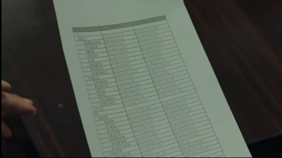 좌측 정렬 재무제표부터 얼토당토않은데, 이 무슨 귀신 씻나락 까먹는 소리인가. 필자는 이 대사를 이해하기 위해 이 장면을 다섯 번을 돌려서 봤다.