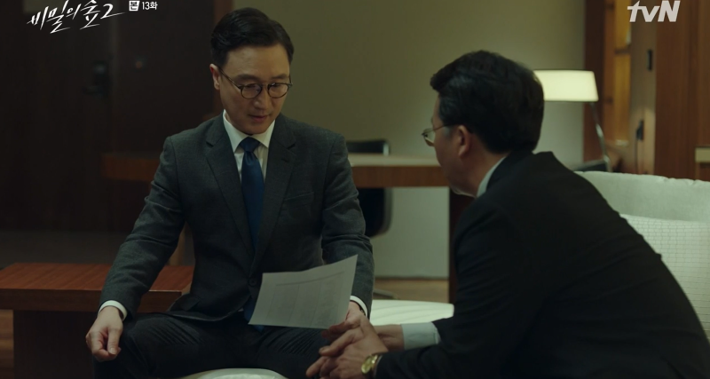 오 변호사는 강 지검장에게 한조 엔지니어링 재무제표를 슬며시 건넨다.