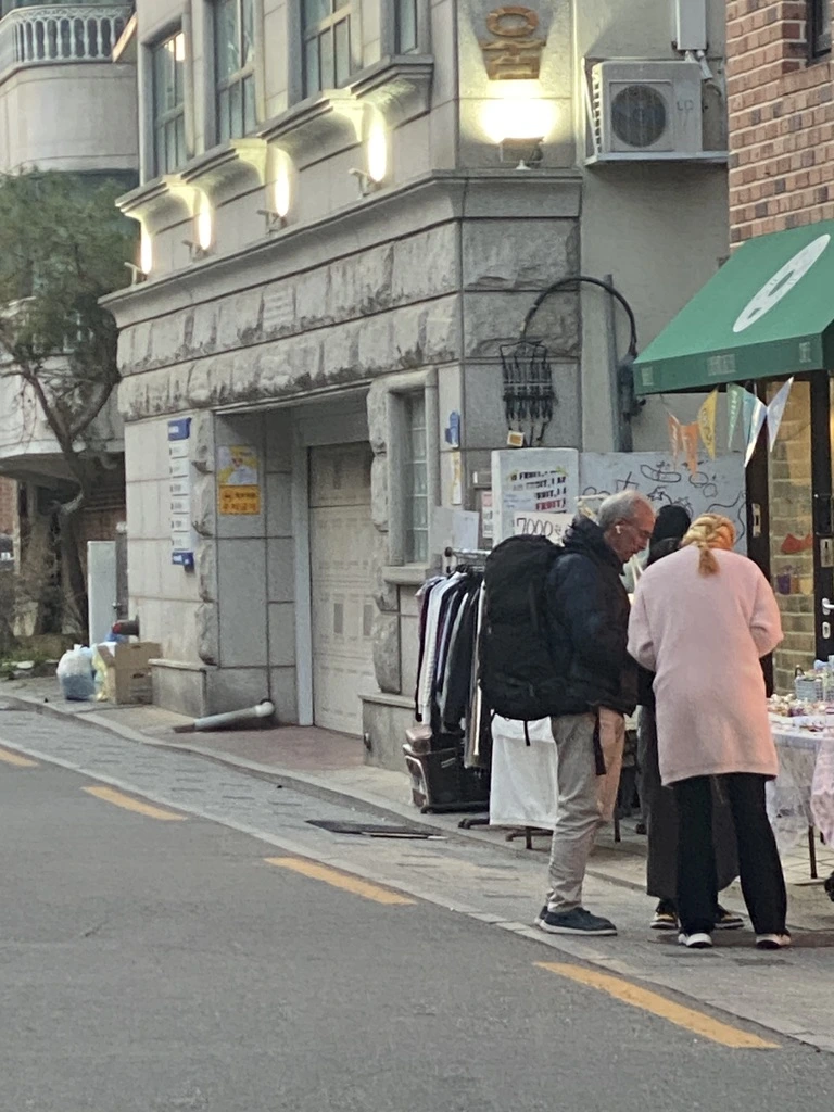 할아버지의 필름 현상을 맡기고 나오면서 큰 배낭을 멘 외국인 할아버지가 눈에 띄었다. 낯선 한국에 여행 와 길을 찾는 모습에서 왠지 모를 기시감이 느껴졌다. 방금 새로 산 필름을 카메라에 넣고 카메라의 셔터를 눌렀다. 초점이 흐릿하게 찍혀버렸지만, 첫 사진으로 만족스럽다. 아마도 할아버지는 저런 모습으로 국내 곳곳을 여행했겠지. 여러 상상을 해본다.
