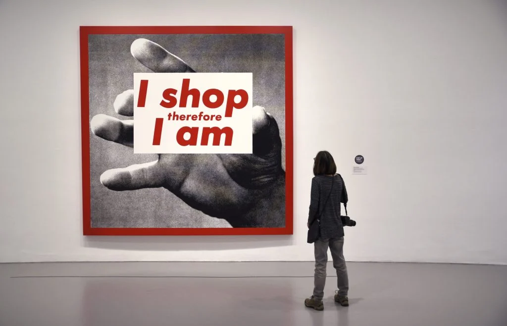 미국의 팝 아티스트 **바바라 크루거(Barbara Kruger)**는 대중 소비사회를 비판하면서도, 소비가 인간 존재와 얼마나 밀접하게 얽혀 있는지를 날카롭게 드러냈다.