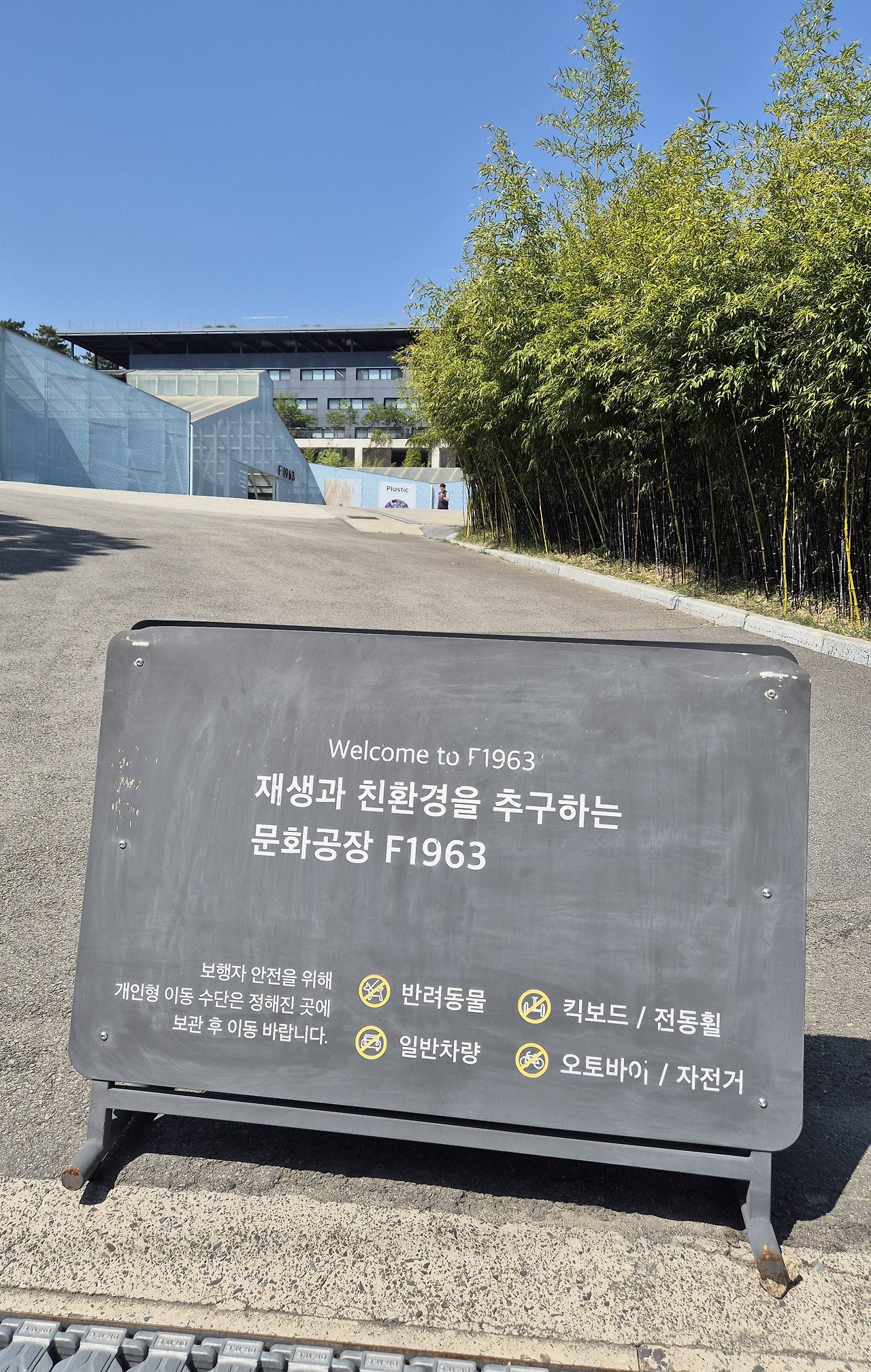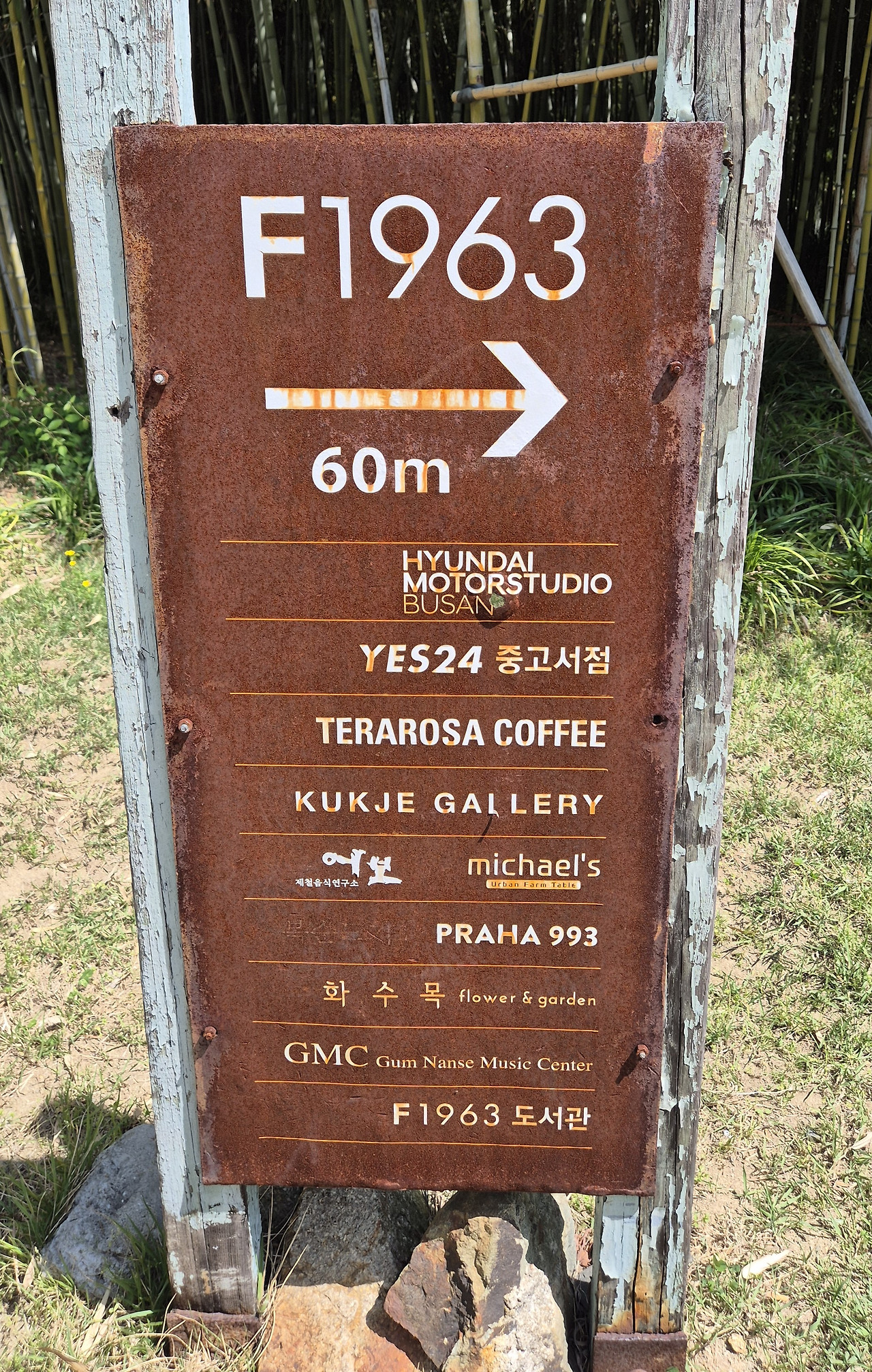 ‘재생과 친환경을 추구하는 문화공장 F1963’이라는 문구가 적힌 낮은 사인이, 조용히 이 공간의 철학을 전한다. 이곳은 1963년부터 2008년까지 45년간 와이어로프를 생산하던 고려제강 공장이었던 자리다.