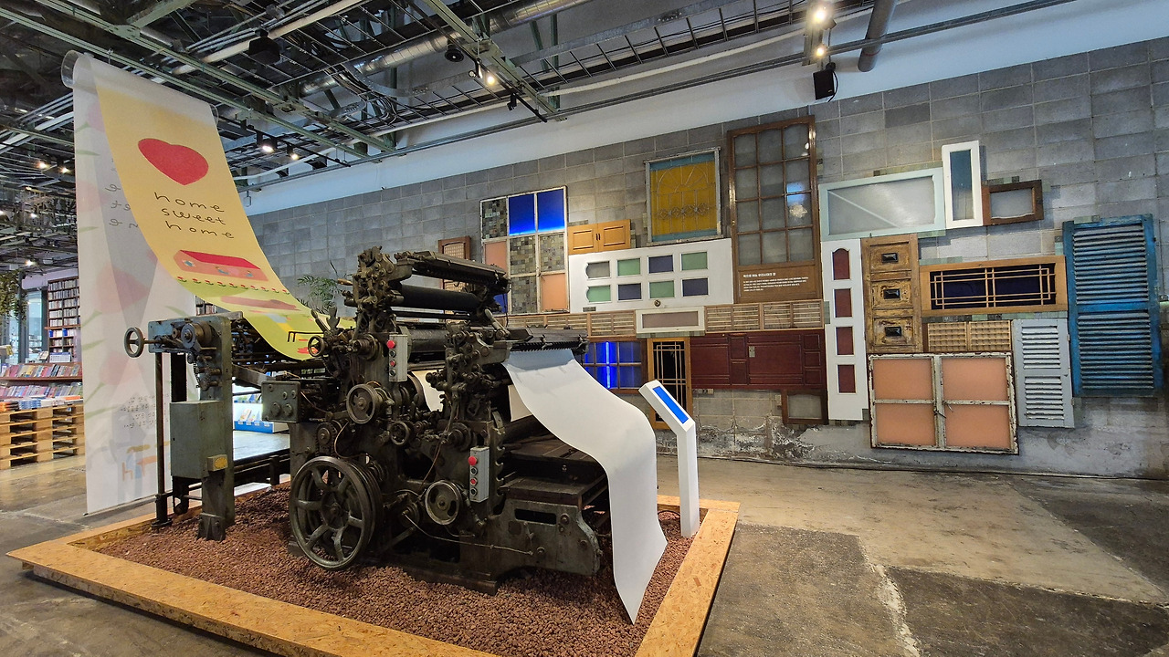 서점 한가운데에는 오래된 인쇄기가 놓여 있었다.