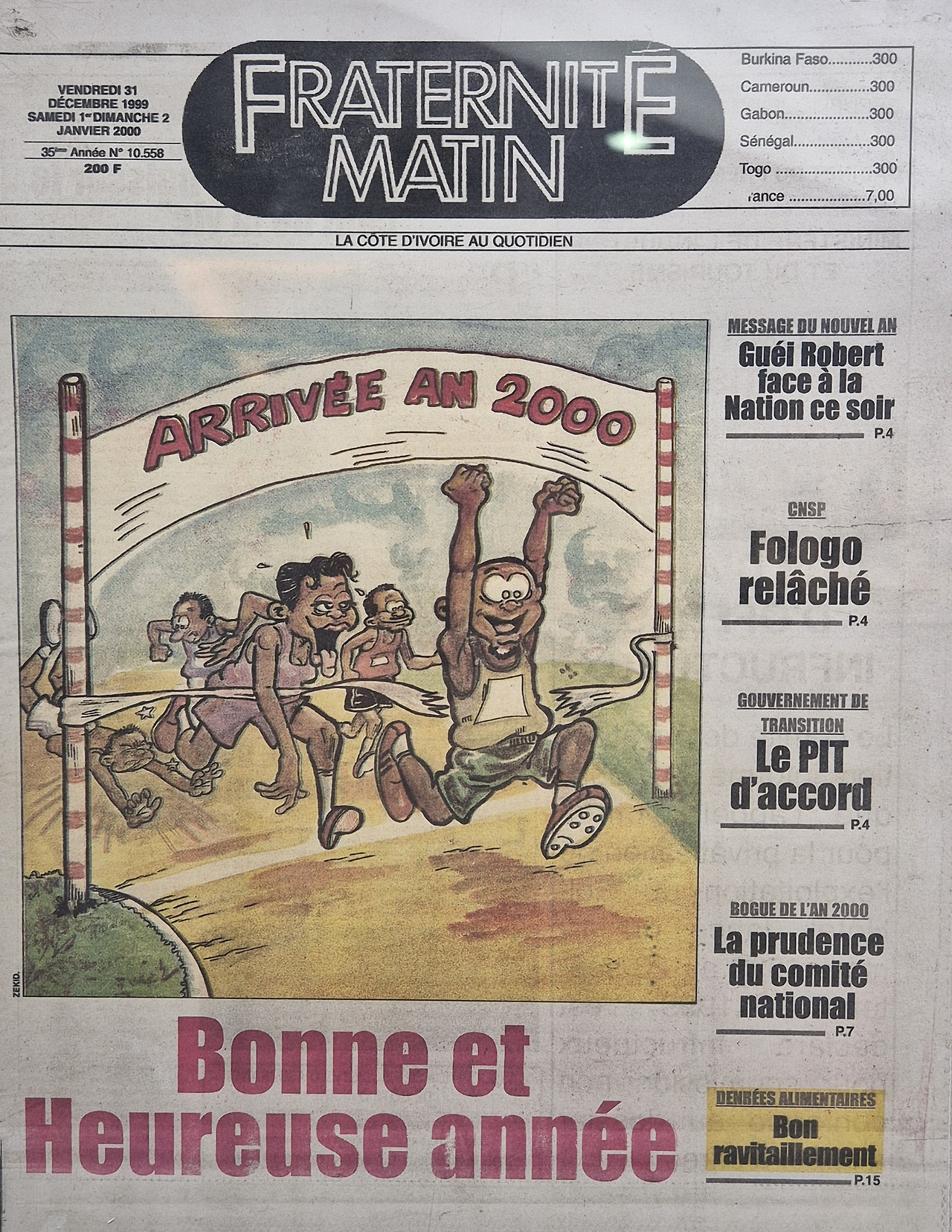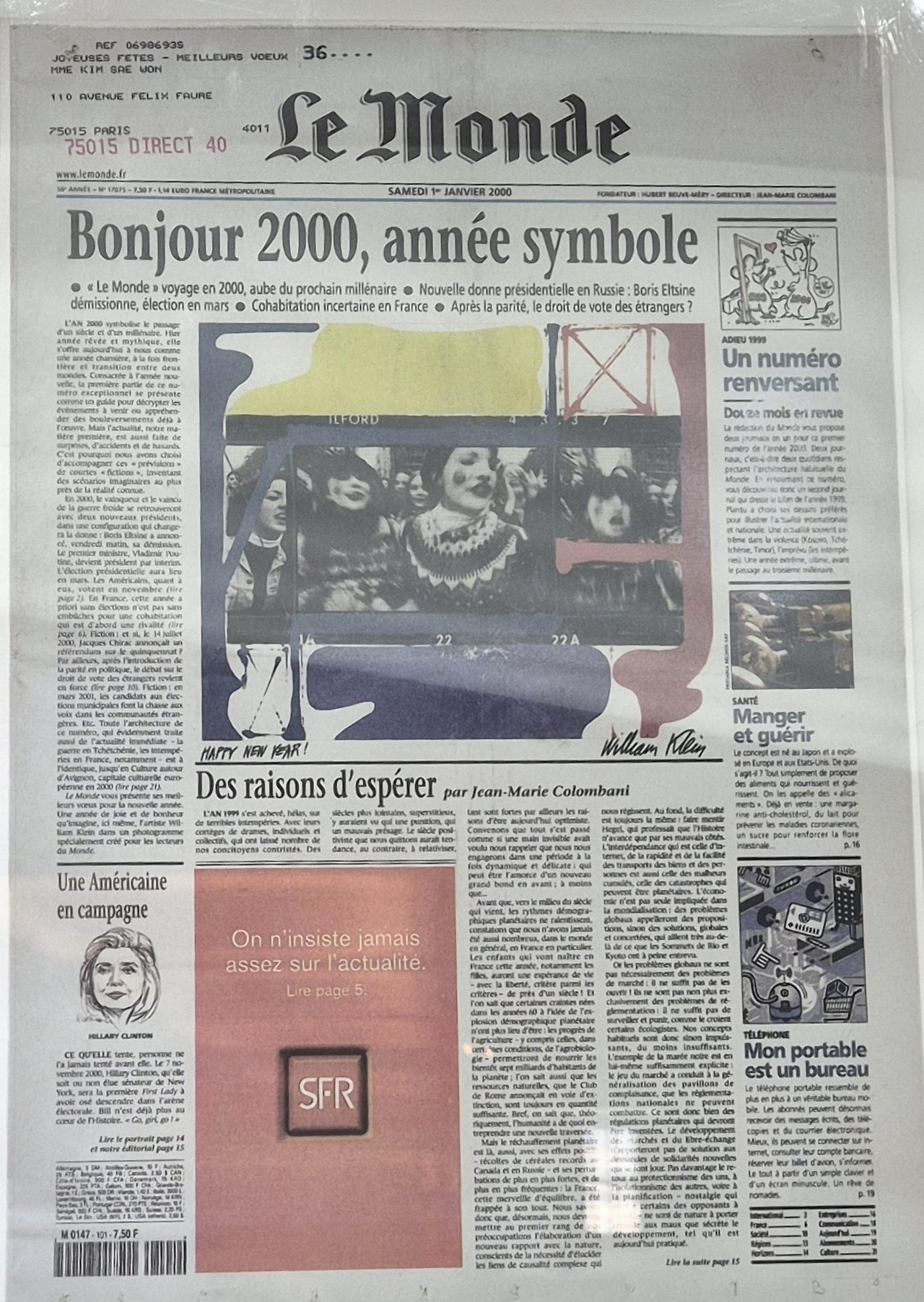 헤드라인인 'Bonjour 2000, année symbole: 안녕 2000년, 상징적인 해'라는 문구로 새로운 시대에 대한 기대와 역사적인 무게를 동시에 담아내고 있다.