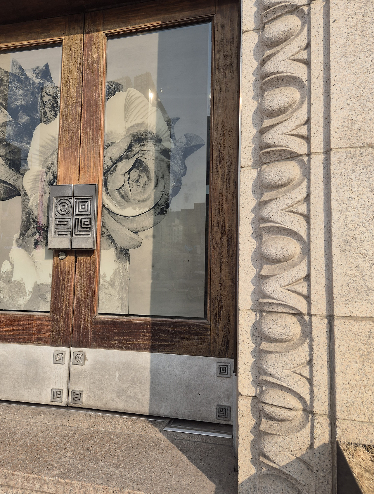 지금은 사용하지 않는 출입구가 원형 그대로 보존되어 있다. 투박한 목재와 금속의 장식, 화강석과 조화를 이루는 테라코타의 장식적인 몰딩이 당시의 건축양식 특징을 나타낸다.