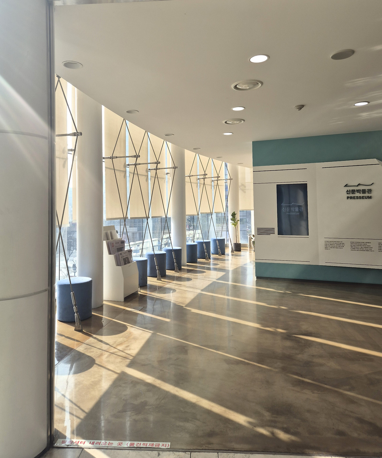 일민미술관 로비에서 엘리베이터로 5층에 내리자 전면 유리를 통해 가득 쏟아지는 오후의 햇살과 길게 늘어진 그림자가 반겨주었다. 안내데스크의 직원 외에 아무도 없는 고요한 박물관을 혼자 관람하는 호사를 누렸다.