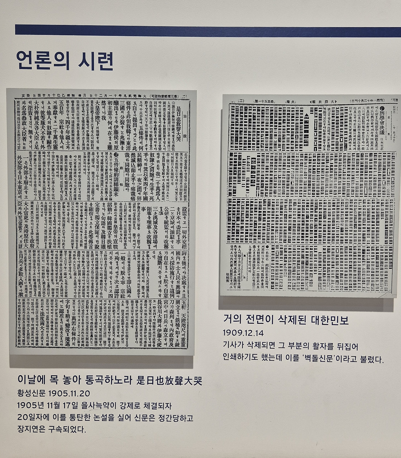 그중에서도 '언론의 시련'이라는 이름 아래 놓인 기록들은 침략자에 의해 억압당하던 시대를 드러낸다.