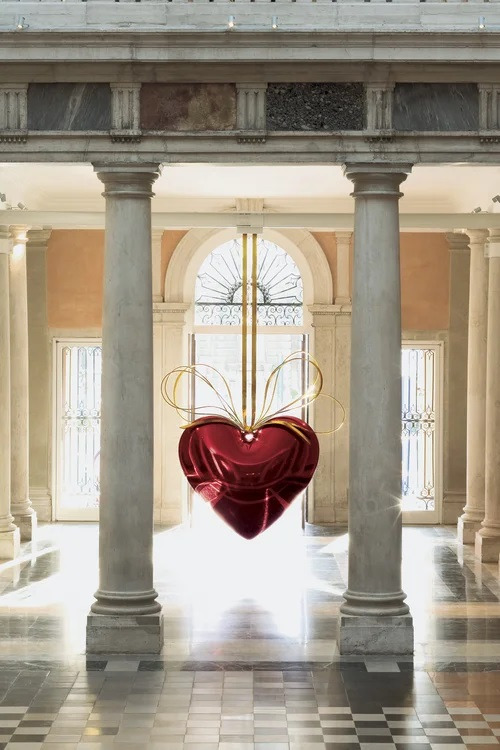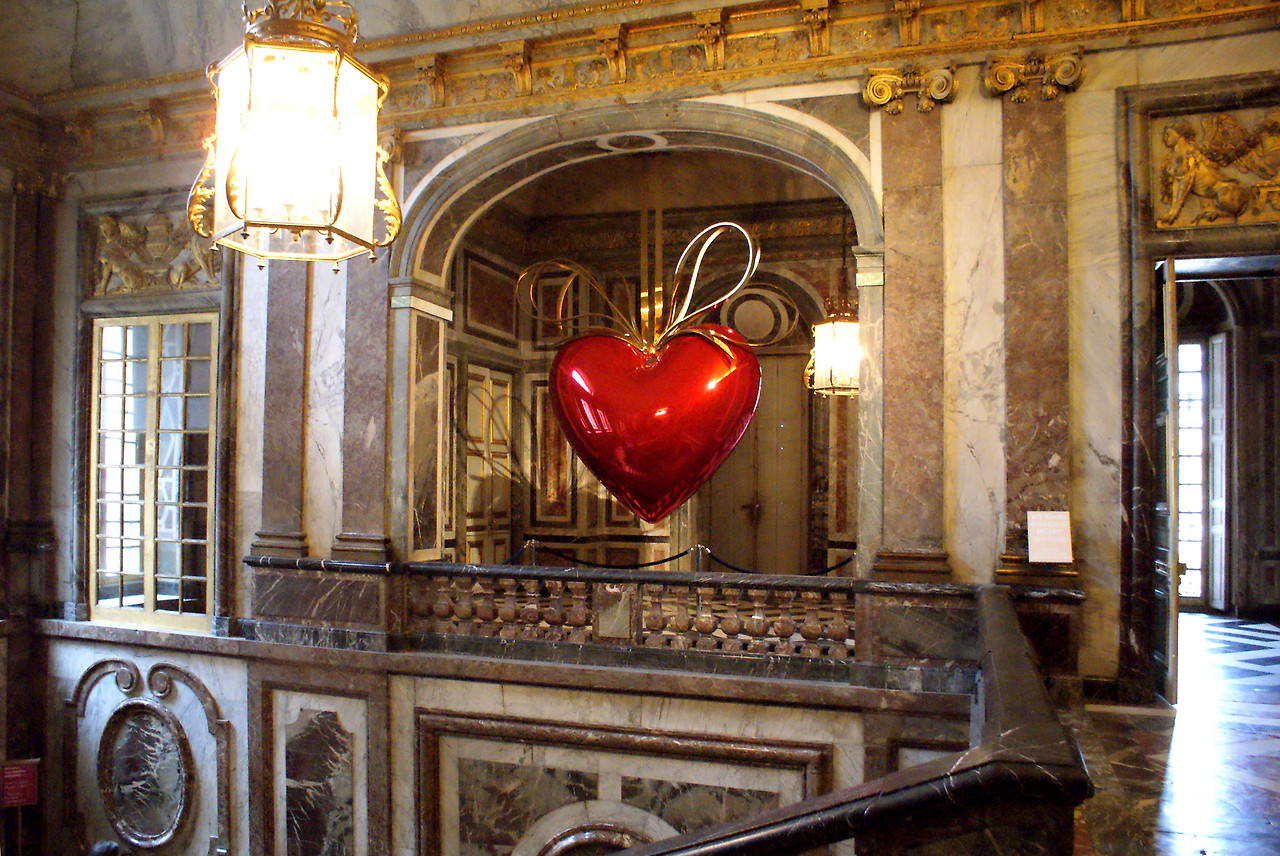 과거의 바로크 양식이 '신'과 '왕'을 향한 경외의 시선이었다면, 쿤스의 작품은 철저히 관람객인 '나'에게 몰입하게한다. <행잉 하트 Hanging Heart>는 거대한 거울이 되어 베르사유 궁전의 화려한 금박장식, 천정, 계단, 대리석 벽과 바닥그리고 다른 관람객들을 반사하며 보여준다.
