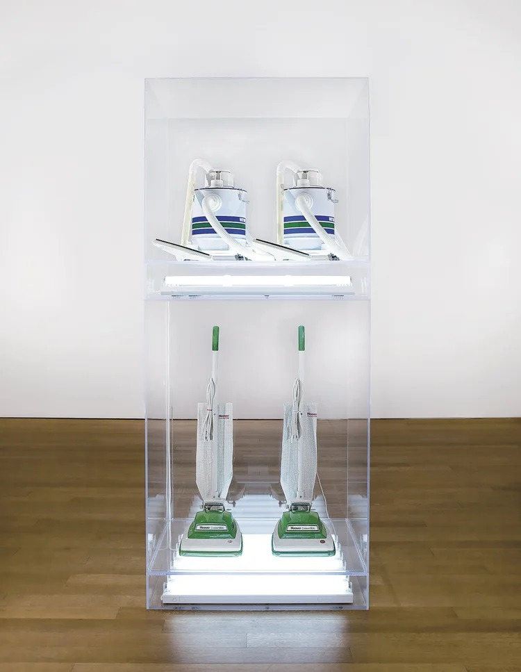 더 뉴(The New): 1980년대 초, 새 진공청소기를 투명한 케이스에 넣어 전시하며 '새것'이 가진 무결함을 찬양했다. 소비사회의 욕망을 날것 그대로 드러낸 초기작이다.