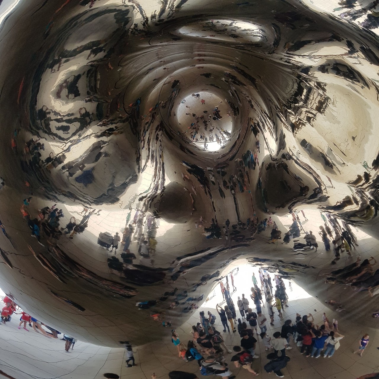 푸른 하늘과 하얀 구름, 그리고 직선의 마천루는 매끄러운 곡면 위로 쏟아진다. 사람들은 작품 안으로 성큼성큼 걸어 들어가 그 표면에 비치는 자신의 실루엣을 즐긴다. 닫힌 공간을 나와 광장으로 확장된 이 거울은, 예술이 전유물에서 벗어나 삶의 한복판에 숨 쉬고 있음을 보여준다.