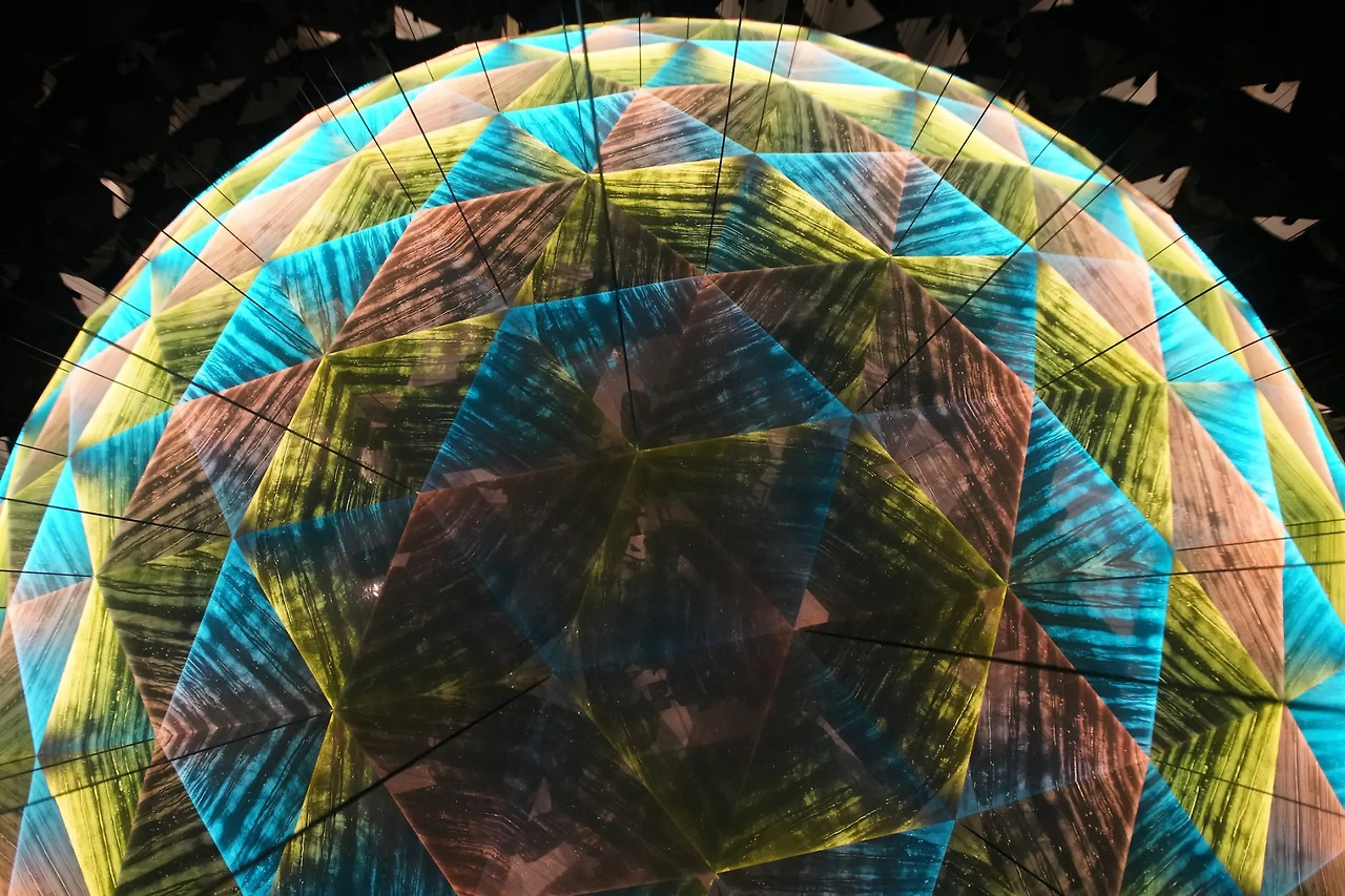 반원의 빛이 물리적인 벽을 허물어 경계를 해체한다면, 만화경은 쪼개진 상을 통해 우리가 믿어온 확실성을 무너뜨린다.
