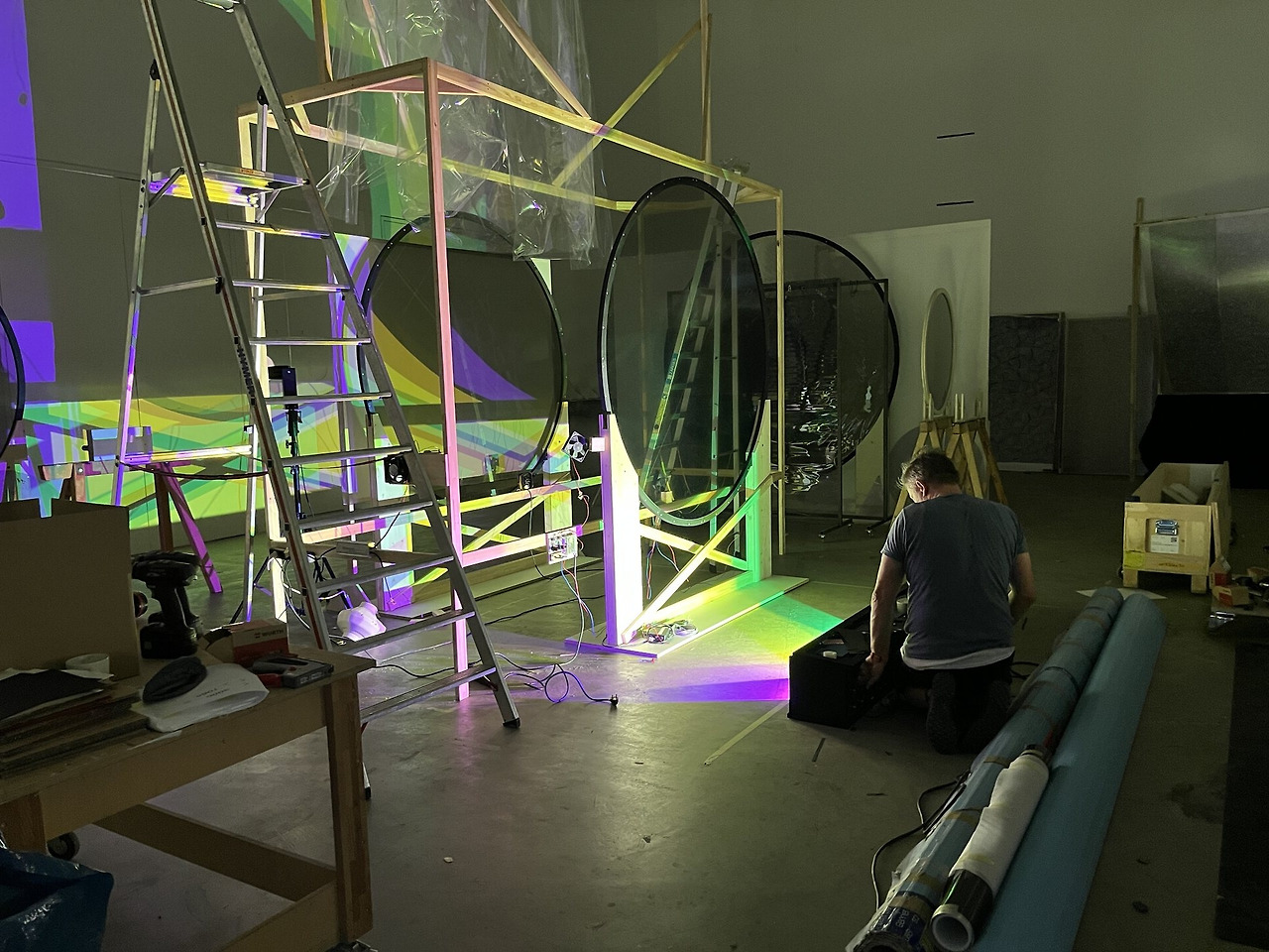 전시장에 드리운 거대한 반원의 빛은 미술관이라는 닫힌 벽을 허물고 바깥의 태양과 무지개를 안으로 불러들인다. 전시장 안과 도시 밖의 경계를 지우고, 자연과 인공의 선을 흐릿하게 만드는 과정이다.