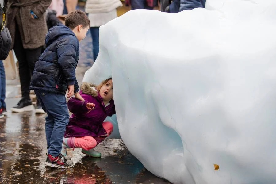 그린란드에서 가져온 거대한 빙하 조각들을 도시 광장에 시계 방향으로 배치했다. 사람들은 빙하에 귀를 대고 수천 년 전 갇혀 있던 공기가 터져 나오는 소리를 듣는다.