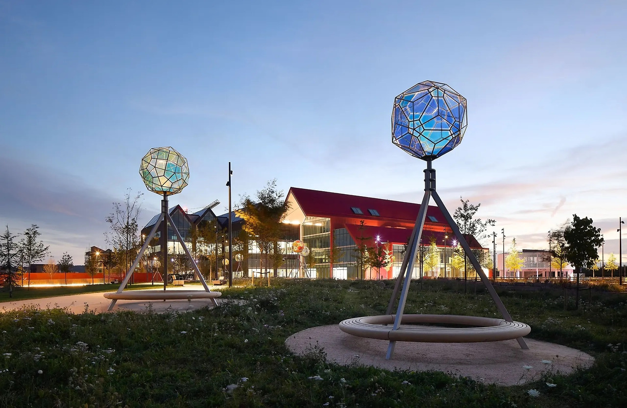공원의 구불구불한 산책로를 따라 배치된 다면체들은 태양계 모형에서 영감을 받았다. 색상은 수성부터 화성, 해왕성에 이르기까지 망원경으로 관측한 행성들의 주요 색조에서 가져왔으며 조명이 켜진 이 다면체들은 공원을 거닐 때 방향을 알려주는 이정표 역할을 한다.