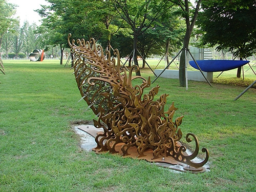 작가는 금속 마디마다 온기를 불어넣어 거대한 날개가 펼쳐지는 듯한 우아한 움직임을 만들어냈다.