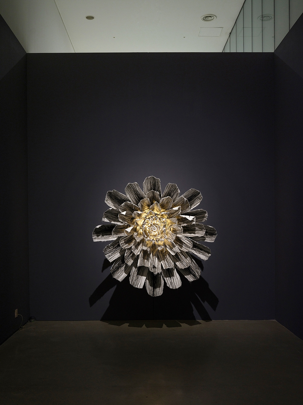 전시는 이 모든 투쟁과 상실의 끝에서 한 송이 꽃을 피워낸다. 흰 국화 형상의 조형물 '원(One)'이다. 작가는 코로나19라는 거대한 죽음의 시기를 통과하며 의료진의 방호복 소재를 사용했다. 시간이 흐르면 변형되고 바스러지는 재료를 통해 영원한 것은 없다는 생명의 유한함을 드러낸다.