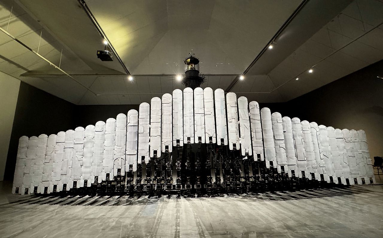 함선에는 35쌍의 노가 달려 있다. 폐지 박스로 만든 노는 지배자의 화려한 날갯짓처럼 위용을 뽐내다가도, 이내 힘을 잃고 바닥으로 낮게 잦아든다. 장엄함과 초라함 사이를 오가는 유연한 박자는 구원을 향한 열망과 그 이면의 허망함을 동시에 드러낸다. 정교하게 설계된 기계의 군무에 기묘한 감정이 서려 있다.