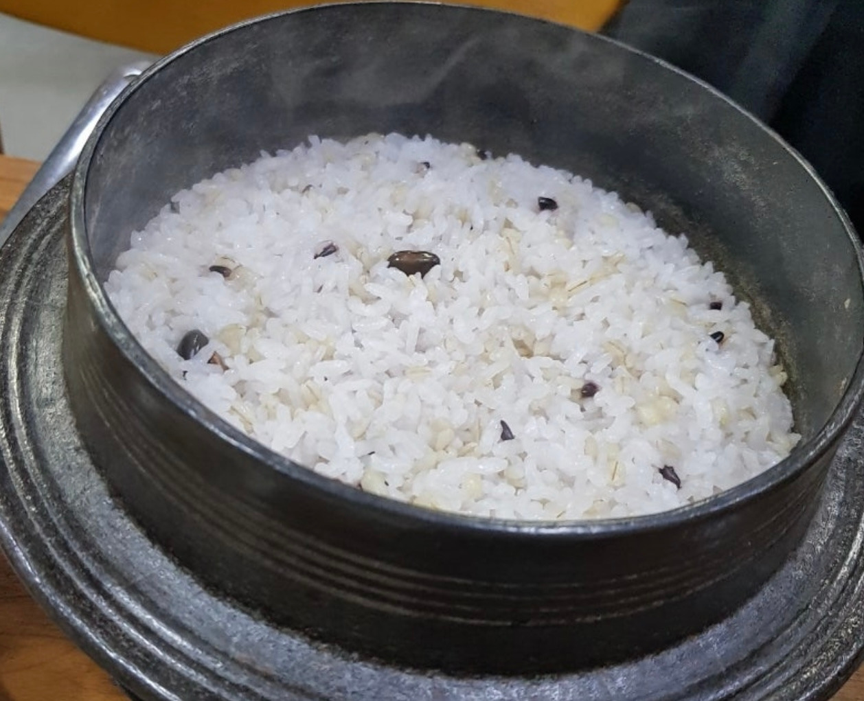 밥은 맨 위부터 솥 아래쪽으로 갈수록 층마다 다른 식감을 보여준다. 골고루 섞어서 밥그릇에 담아주시기 때문에 한입 안에 여러 가지 밥의 딱딱함의 정도를 느낄 수 있다. 솥과 닿아 있는 부분까지는 긁어주시지 않는다. 누룽지를 만들어야 하기 때문인데, 할아버지가 그걸 계산하시고 담아주신 것 같았다. 밥은 아주 부드러운 느낌부터 약간 고슬고슬한 느낌까지 다양하게 맛볼 수 있어서 좋다.