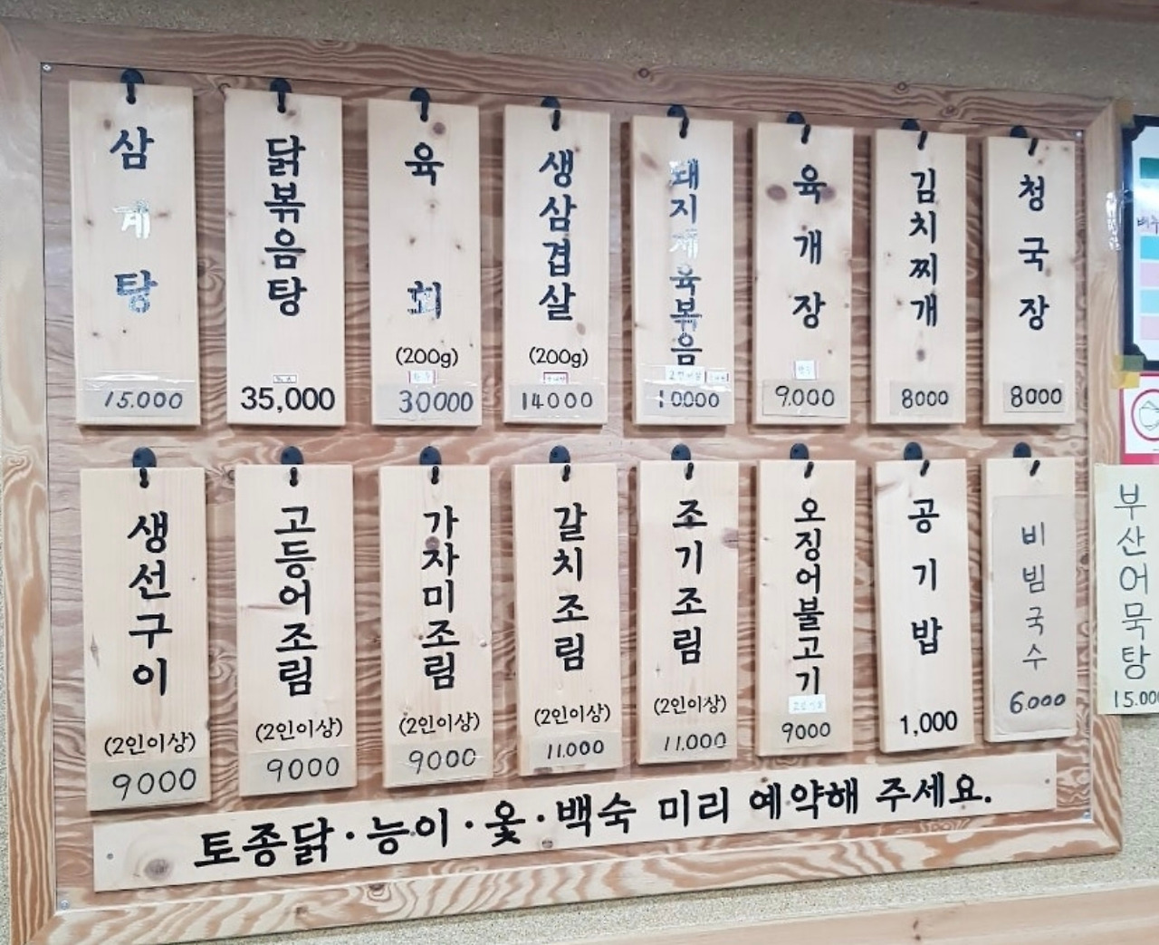 생선구이, 고등어조림, 가자미조림, 갈치조림, 동태찌개, 삼계탕, 닭볶음탕, 생삼겹살에 김치찌개까지…
