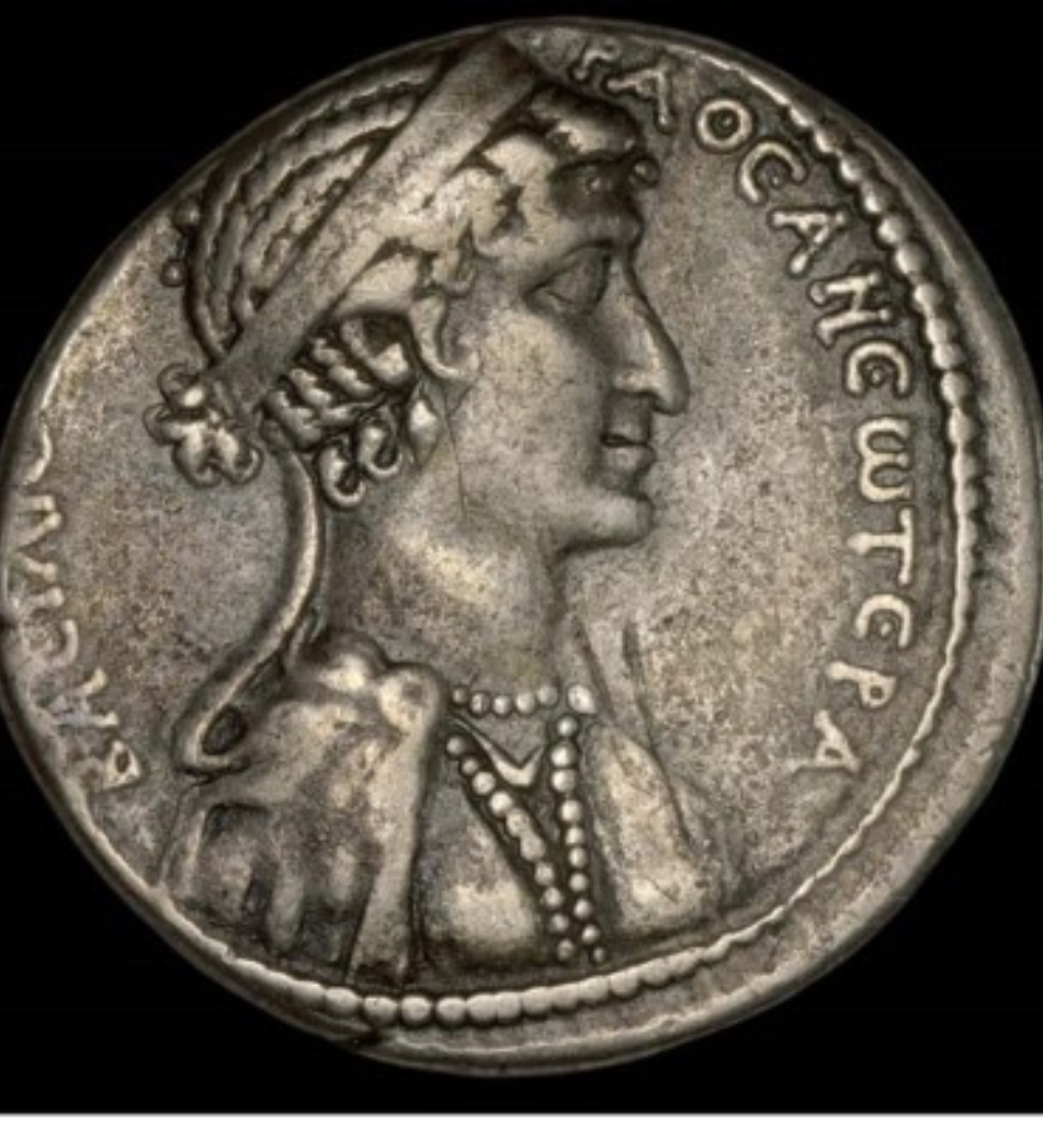 벽의 높은 곳에 뚫려 있는 구멍들 속에서 쏟아져 들어오는 빛 때문에 폼페이우스는 여왕의 얼굴을 똑똑히 볼 수 있었다. 오직 젊음이 주는 매력만이 그나마 인상을 부드럽게 만드는, 딱할 정도로 못생긴 얼굴이었다. 그의 마음에 드는 큰 눈은 녹금색 혹은 녹갈색이었다. 키스하기 좋은 입이었지만 단호하게 다물어져 있었다. 코는 카토-로마 원로원 의원, 카이사르의 열렬한 반대자. 코가 크기로 유명하다.-의 코만큼이나 큰 데다 유대인의 코처럼 강한 매부리코였다. 마케도니아인의 특징이라고는 찾아볼 수 없는 아가씨였다. 전형적인 동방인의 외모였다.』(Masters of Rome Ⅴ. ‘카이사르’ 3권 249~251p)