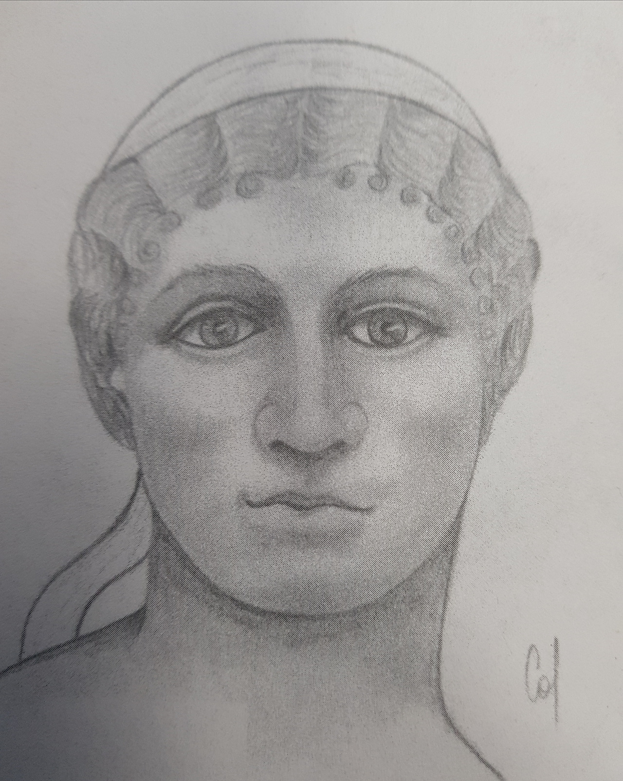 그녀가 돗자리 안에 숨을 수 있었던 것은 놀라운 일이 아니었다. 그녀의 몸에 붙어 있는 것이라곤 아무것도 없었다. 골격이 우람한 미트리다테스 왕가의 피는 다 어디로 간 거지? 카이사르는 의자에 앉아 그녀를 자세히 뜯어보며 자문했다. 키는 150센티미터가 채 안되고, 체중은 잘해야 1.5탈렌툼(약 75파운드, 1파운드는 0.45392킬로그램)이겠군, 납으로 된 신발을 신어도 기껏해야 35킬로그램쯤 되겠어. 이것이 위엄의 흔적이라곤 없는 작고 가녀린 인물에 대한 카이사르의 첫인상이었다. 그럼에도 원숭이처럼 재빨리 몸을 일으키고, 거울로 쓸 만한 광이 나는 금속 물체가 없는지 방 안을 둘러보는 시늉조차 하지 않는 그녀의 모습에 카이사르는 무척 놀라워했다. 오, 마음에 들어! 그는 생각했다. 어머니가 떠오르는구나. 똑같이 활기찬 데다 솔직하면서 현실적인 태도를 지녔어. 그러나 그의 어머니가 로마 최고의 미인이라 불렸던데 비해, 누가 어떻게 따져보더라도 클레오파트라가 미인이라 불릴 일은 없을 터였다. 가슴이라 불릴 만한 것도, 엉덩이도 없었다. 그냥 위아래로 일자인 몸의 어깨에 두 팔이 막대처럼 붙어 있었으며 목은 길고 가늘었다. 머리는 몸에 비해 너무 큰 키케로의 머리를 연상시켰다. 한마디로 못생긴 얼굴이었다. 코가 워낙 크고 매부리코인 탓에 얼굴에서 코만 보일 정도였기 때문이다. 상대적으로 얼굴의 다른 부분은 양호했다. 도톰하지만 너무 두껍지 않은 입술, 멋진 광대뼈-도대체 멋진 광대뼈란 어떤 광대뼈일까?-,턱이 매끈한 계란형 얼굴, 그러나 눈만은 아름다웠다. 매우 크고 활짝 트인 눈, 짙은 색 눈썹 아래 짙은 색 속눈썹이 달려있었으며 홍채는 사자와 똑같은 황금색이었다. 가만, 저런 색깔의 눈을 어디서 봤더라? 당연히 미트리다테스 대왕의 자손들 중에서였지! 음, 그녀는 그의 손녀가 맞지만 눈을 제외하고는 미트리다테스 가문의 특징은 없다. 그들은 게르만족의 코에 머리카락이 노란 키 크고 덩치 좋은 사람들이었으니. 그녀의 머리카락은 옅은 갈색에 역시나 숱이 적었다. 이마에서 목덜미까지 가닥가닥 나누어 돌돌 만 머리카락을 한데 모아 작고 단단한 매듭처럼 고정해 놓은 모양이 수박껍질의 무늬 같았다. 매력적인 피부는 짙은 올리브색에 혈관이 푸르스름하게 비칠 장도로 투명했다. 흰색 리본으로 된 디아데마(diadema, 머리장식용 띠)를 머리선 뒤쪽으로 묶고 있었는데, 이것이 그녀가 왕족임을 보여주는 유일한 증거였다.(Masters of Rome Ⅵ. ‘시월의 말’ 1권 88p~89p)