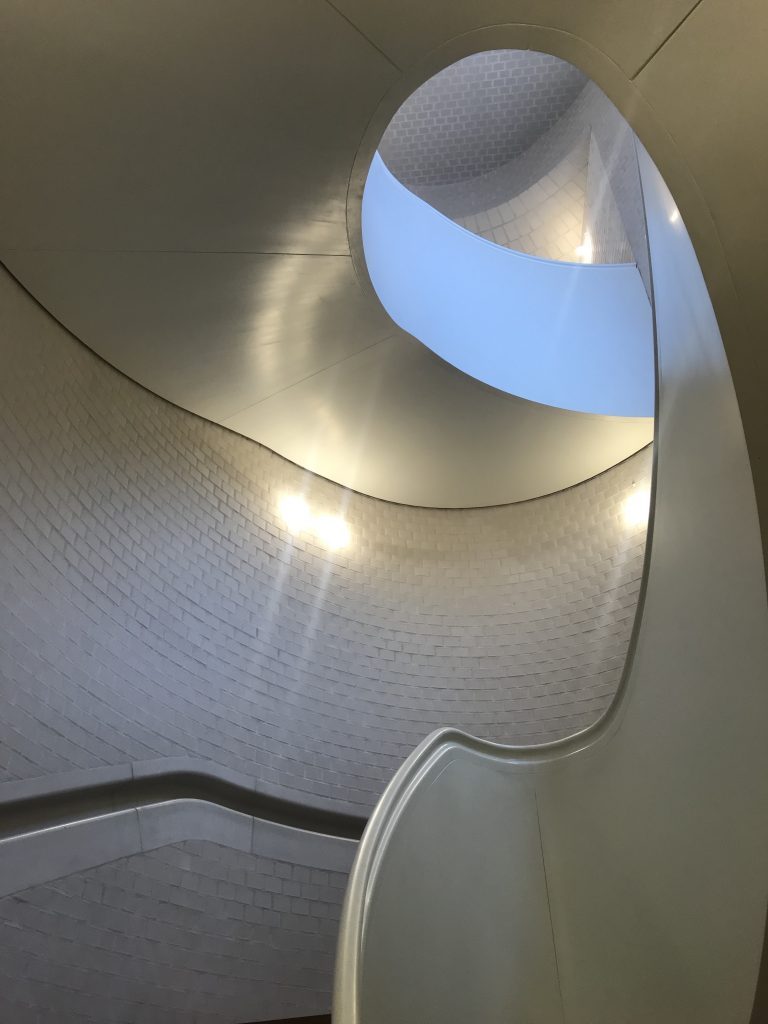 전시도 전시지만 이곳의 절대적인 하이라이트는 층간 갤러리를 이어주는 나선형 계단이었다. 흰 벽돌로 감싼 벽, 흰 손잡이, 흰 천정, 밟고 있는 나무 계단 외에는 온통 하얀 이곳을 오르면 어디 신성한 곳에 다다를 것 같은 그런 느낌이 들 정도. 계단을 한 걸음씩 오를 때 내 발소리의 울림까지 함께 기억이 난다. (아무도 없어서 슬쩍 셀피도 하나 남겼는데, 온통 하얀 사방이 반사판 역할을 해서 꽤 만족스러운 결과물이 나왔다.)