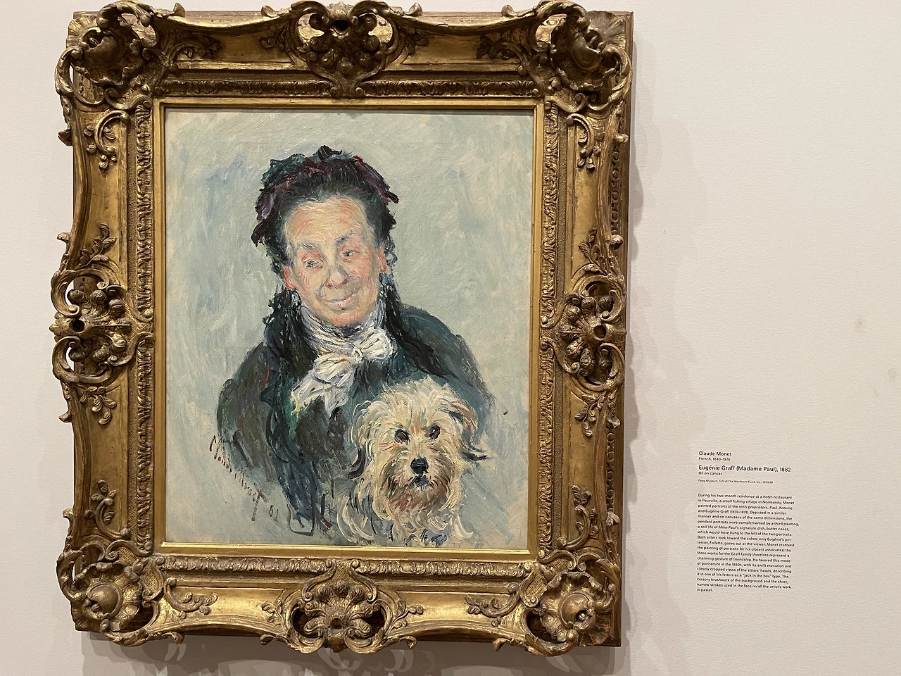 모네는 노르망디 작은 어촌 마을에 있는 한 호텔 겸 레스토랑에서 두 달간 머무는 동안 여관 주인인 유제니 그라프의 초상화를 그렸다고 한다.