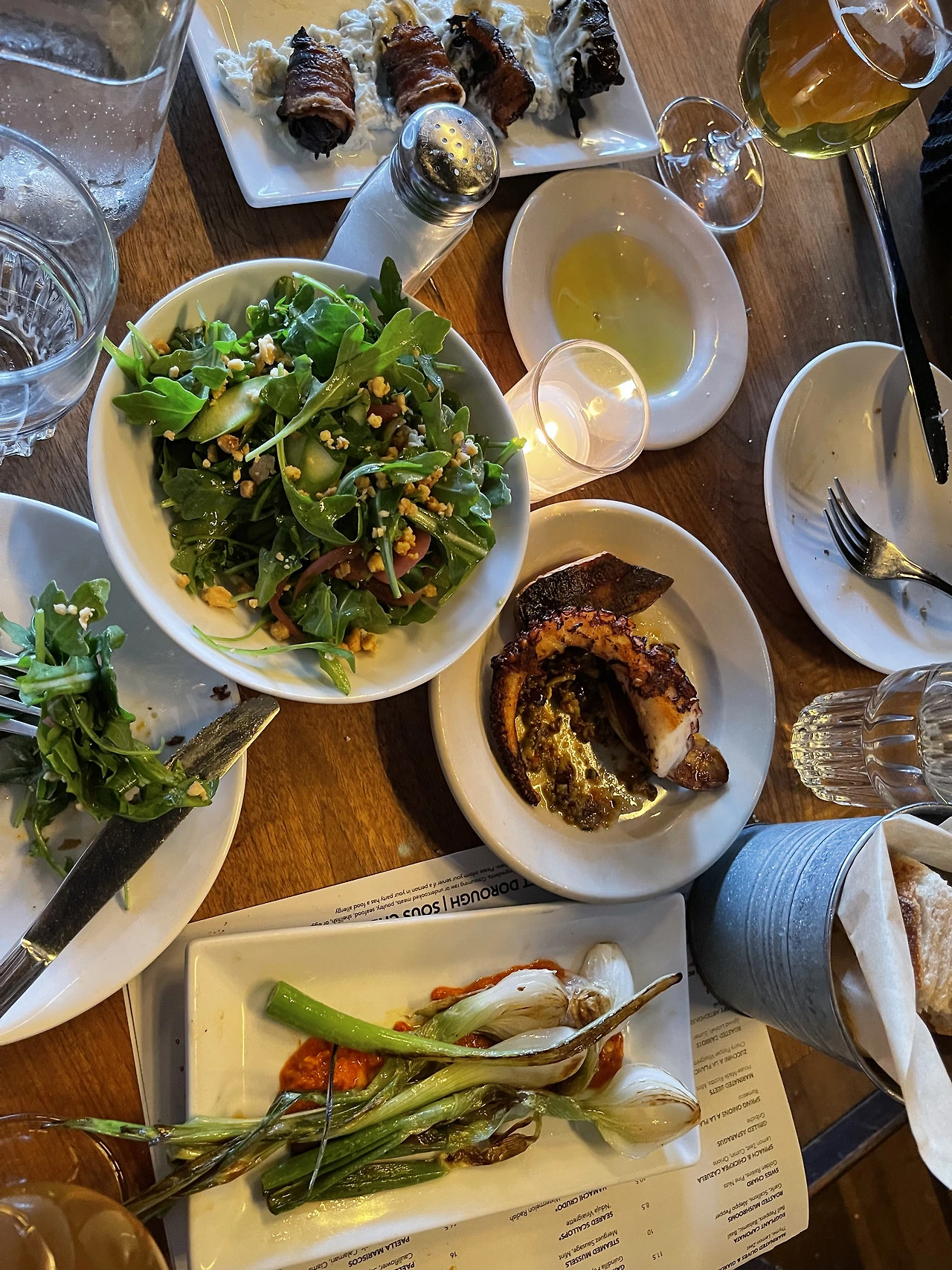 금요일 저녁 이른 저녁을 하러 딸과 함께 걸어서 스페인 식당을 갔다. 날씨가 좋아서인지 야외에서 식사를 하는 사람도 많았다. 동네 사람들이 가는 시끄럽고 즐거운 분위기의 식당. 작은 음식을 여러 개 시켜 나눠먹기로 했다. 메뉴 중 하나는 달달한 대추야자를 베이컨으로 감싸서 구운 단짠이 조합된 음식이었다. 나온 음식을 보니 내 입장에서는 반쯤 탄 음식. 딸도 지난번엔 이렇지 않았다고 해서 웨이터에게 이거 너무 탔다고 하니 다른 걸로 다시 해주겠다고 한다. 지금 나온 음식은 그냥 먹든지 말든지 하라고. 그래서 다시 나올 음식을 기다리며 옆 테이블에 나온 같은 음식을 보니 그것도 반쯤 탔다. 우리 것만 실수한 것이 아니고 주방장의 요리 방식이 바뀌었나 생각하던 차에 음식이 다시 나왔다. 결과가 비슷하다. 이 것 빼고는 다른 음식은 모두 훌륭해서 즐거운 시간을 보고 계산을 하려고 보니 그 음식 값을 빼고 결제를 한다.