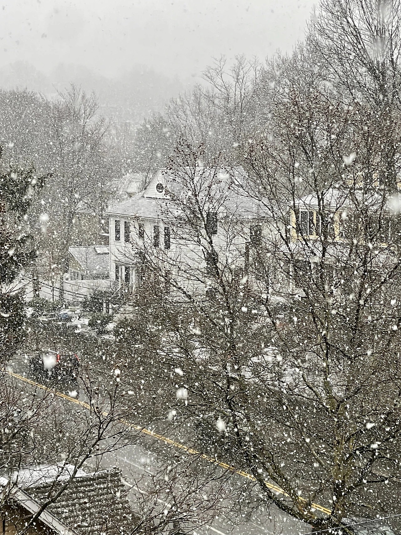 아침에 일어나니 눈이 내리고 있었다.