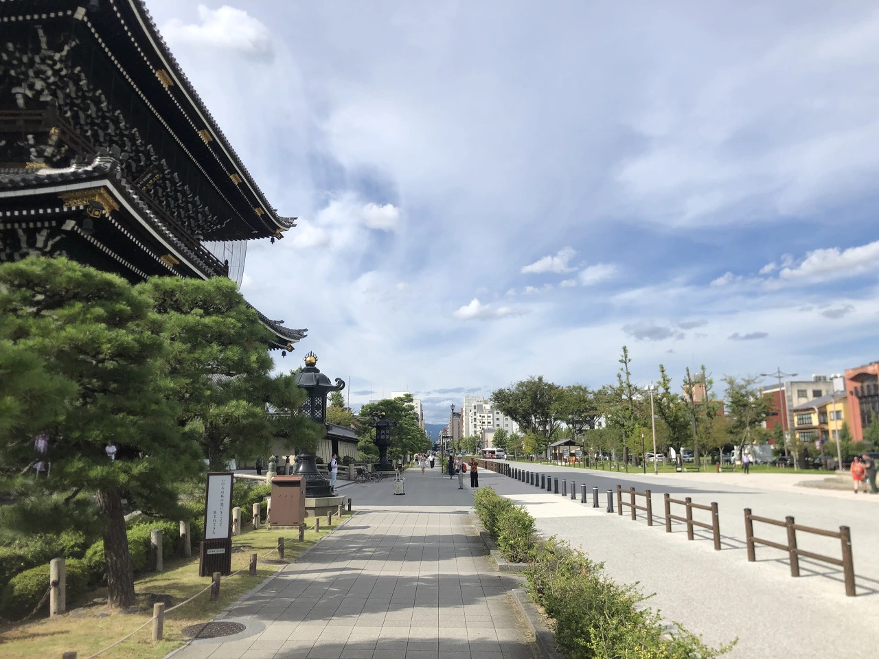 9월의 교토는 아직 여름이 한창 진행 중이었다. 최고 35도까지 올라가던 날에는 돌아다니기 쉽지 않았다. 고도 제한이 있어서 높은 건물이 없는 덕분에 멋진 여름 하늘을 실컷 볼 수 있었다. 오래전 부여에 갔을 때 같은 경험을 했던 게 생각이 났다. 고도의 특징인가 하는 생각도 잠깐 했다.
