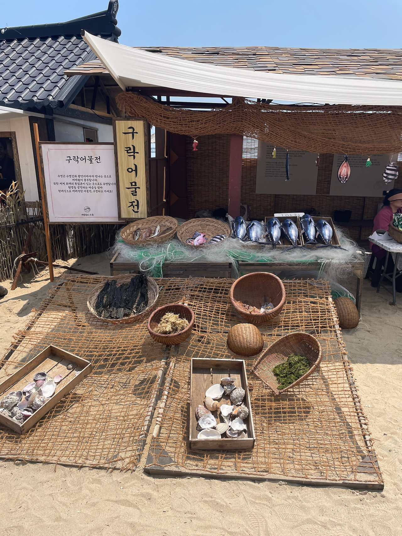 축제를 따라 곳곳에 신경을 쓴 곳들이 많이 보였다. 축제 장소 곳곳에는 전통적인 어방을 꾸며놓은 곳들이 보였다. 체험관이라든가 만들기를 할 수 있는 곳은 사람이 북적거렸다. 무언갈 하자니 어린아이들을 제치고 나서기 다소 민망해 발걸음을 돌렸다. 그래도 그냥 가자니 섭섭해 어방 축제의 염원을 비는 곳에 주변인의 건강을 비는 짧은 글을 적었다.