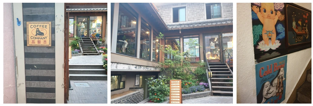 수십년 된 한옥 가옥의 구조를 살리면서 적절히 현대적인 느낌을 살림으로서 이곳만의 레트로한 느낌을 더한 곳이다. <프릳츠>로고만 봐도 70~80년대의 낡은 듯한 느낌과 잘 어울리는 공간이다. 물개가 반할 정도의 커피를 즐기는 위트있는 모습에 사람들의 발길은 이어지고 있다.