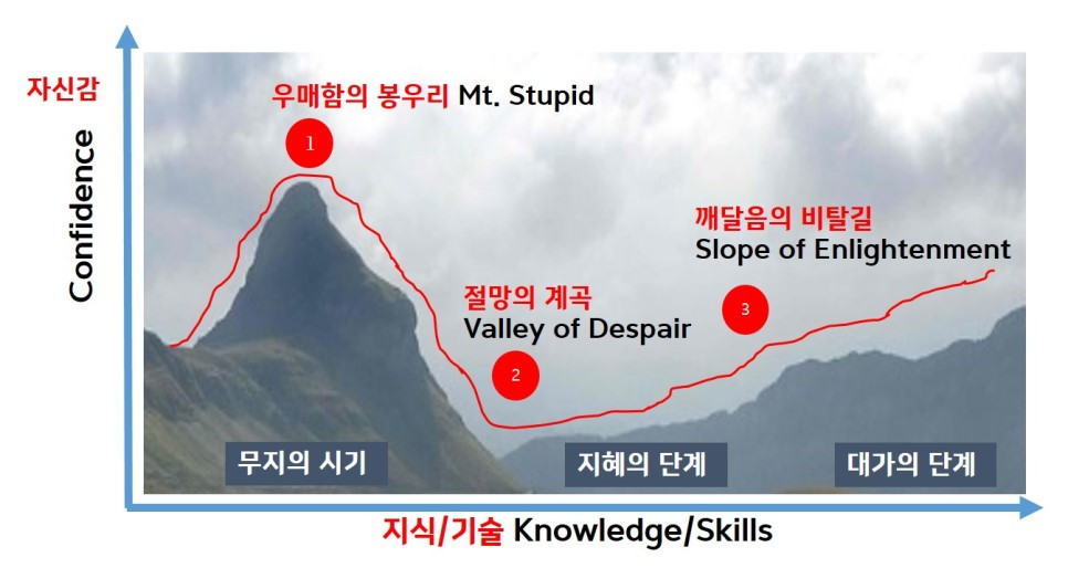 둘째는 ‘더닝 크루거 이펙트’의 싸이클을 정확히 이해하고