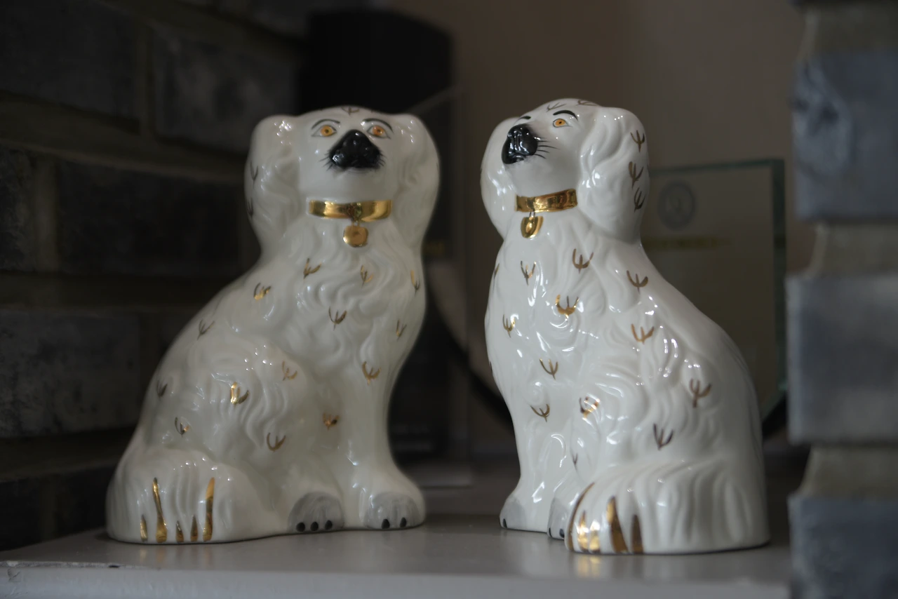 스태퍼드셔 도그 인형은 영국 빅토리아 시대, 19세기에 유행했다. 고전적이고 보수적인 문화가 주류를 이루던 때다. 이 인형은 주로 주택의 난로 선반에 올려놓았다고 한다. 이 때문에 hearth spaniels 또는 fireplace dogs, 다시 말하면 ‘난로 강아지’라고도 불렀다고 한다. 1700년대부터 도자기 공장들이 많았던 스태포드셔 지역에서 많이 만들어졌다. 인형의 모습과 구성은 느슨하나마 규범으로 정해져있었다. 단품이 아니라 쌍으로 앉게 만든다. 목에는 금 사슬과 펜던트를 장식한다. 주로 크림색의 흰 털을 바탕으로 만든다. 개의 외양은 주로 스패니얼 품종을 따른다. 그레이하운드 등 다른 개들도 많이 만들어졌지만, 스패니얼이 가장 인기를 끌었다. 이 인형은 전형적인 빅토리아 시대 부르주아들의 신분 상징 장식품이었다고 한다. 이들이 스패니얼 외형을 선호한 것은 신분 상승의 욕구가 반영된 결과이다. 당시 킹 찰스 스패니얼(King Charles Spaniel) 품종의 개는 왕족들이 주로 길렀다. 이름 자체가 영국의 찰스 2세 국왕에서 나왔다. 찰스 2세는 이 작은 개를 사랑해서 항상 같이 놀았다고 한다. 반대파들이 일은 안 하고 개와 시간을 보낸다고 비난할 정도였다. 부르주아들은 이런 상류층의 여유로운 생활을 동경했을 것이다. 아마도, 난로 위의 개를 보면서 귀족의 삶을 상상하지 않았을까.