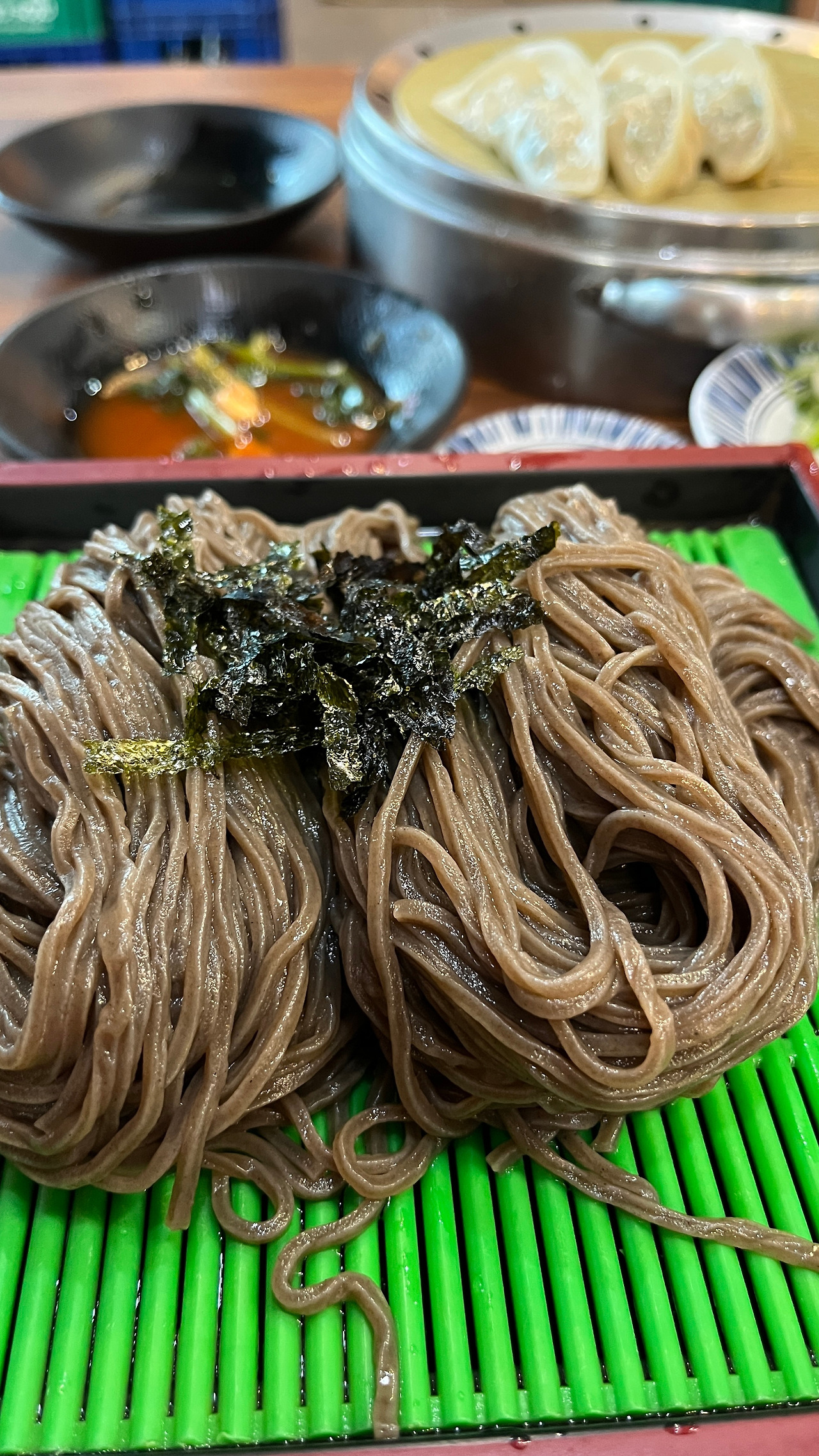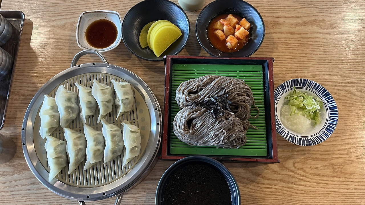 시간은 흘렀지만, 장소는 기억을 품은 채 그대로였다. 예전에는 전시를 준비하러 오던 곳이었고, 지금은 하루의 라이딩을 마치기 위해 도착하는 곳이 되었다. 춘천에 도착한 날, 나는 '춘천 소바'로 향한다. 여름이라면 늘 판메밀을 시킨다. 여기서 '자루(笊)'¹는 대나무로 엮은 소쿠리나 평평한 채반을 뜻하는데, 면의 물기가 아래로 자연스럽게 빠지게 하여 식감을 끝까지 쫄깃하게 유지해 주는 지혜가 담겨 있다. 메밀의 담백한 향이 올라오고, 무즙과 고추냉이를 푼 차가운 육수에 면을 적셔 먹으면 운동 뒤의 피로가 씻겨 나간다.