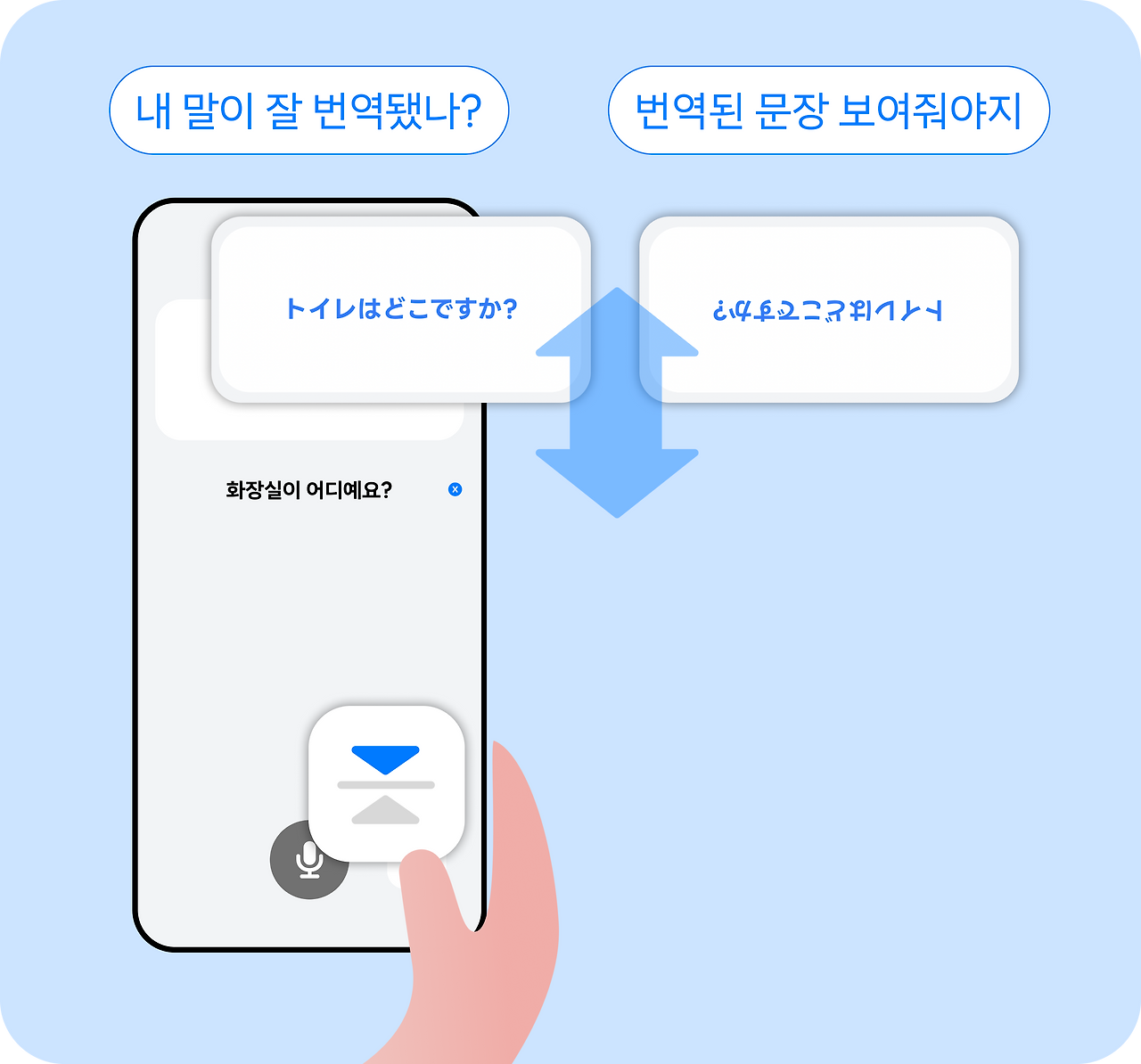 따라서 상대방 번역창을 뒤집어 줄 수 있는 버튼도 내가 조작할 수 있도록 하단에 배치했어요.