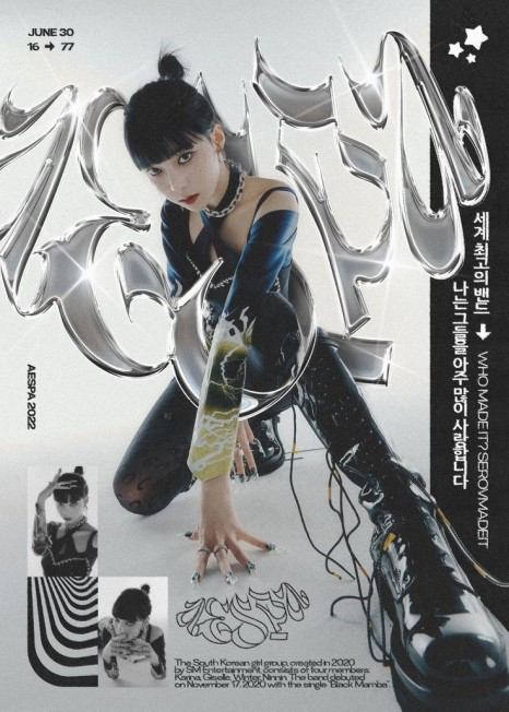 자연스레 에스파의 착장도 눈에 들어온다. 그래픽 속 윈터는 어깨를 드러내는 오프숄더, 배를 보이는 크롭 티 등 Y2K 패션을 기반으로 유광 부츠, 체인 초커 같은 펑크 아이템, 초현실적인 디자인의 액세서리와 개성 넘치는 네일 등을 통해 몽환적이며 고유한 분위기를 내고 있다. 내가 입버릇처럼 내뱉는 ‘시크하다.’라는 표현에 가장 부합하는 패션이다. 이렇게 매력적인 정반합을 내놓다니, 한껏 튜닝한 미래형 외제차를 보는 느낌이다.