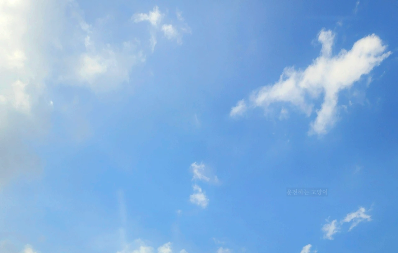 가지고 있는 모든 성의를 더해 '예쁨'을 뿜어내고 있는 하늘 덕분에 고개를 뒤로 젖히고 그를 바라보는 시간이 점점 늘었다. 사진은 덤이다. 지나온 세월의 숫자가 하나하나 늘어갈수록 내 몸에 알게 모르게 밴 풍경을 향한 소유욕도 커진다는 말, 웃프지만 그게 뭔지 너무 알 것 같은 거다. 구김살, 회색빛 따윈 없는 뽀오얀 구름, 그 구름 사이로 지나다니는 태양의 빛은 참지 못하고 새어 나오는 환희로 보였고, 하늘이 보여주는 색도 전과는 사뭇 달랐고....... 마흔 해 가까이 본 하늘인데도 불구하고.