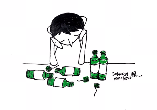 빈 소주병을 세워가며