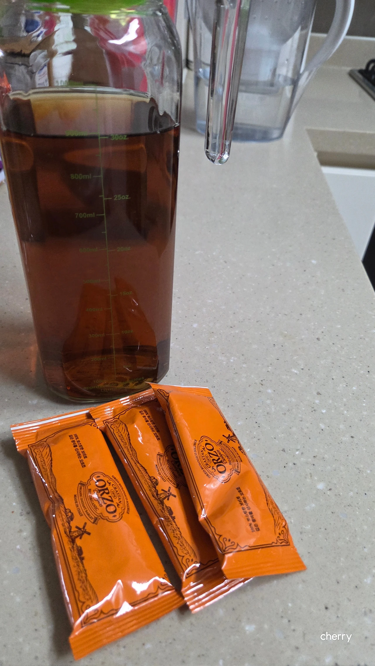 오늘 나는 생수에 보리차 가루를 넣었다.