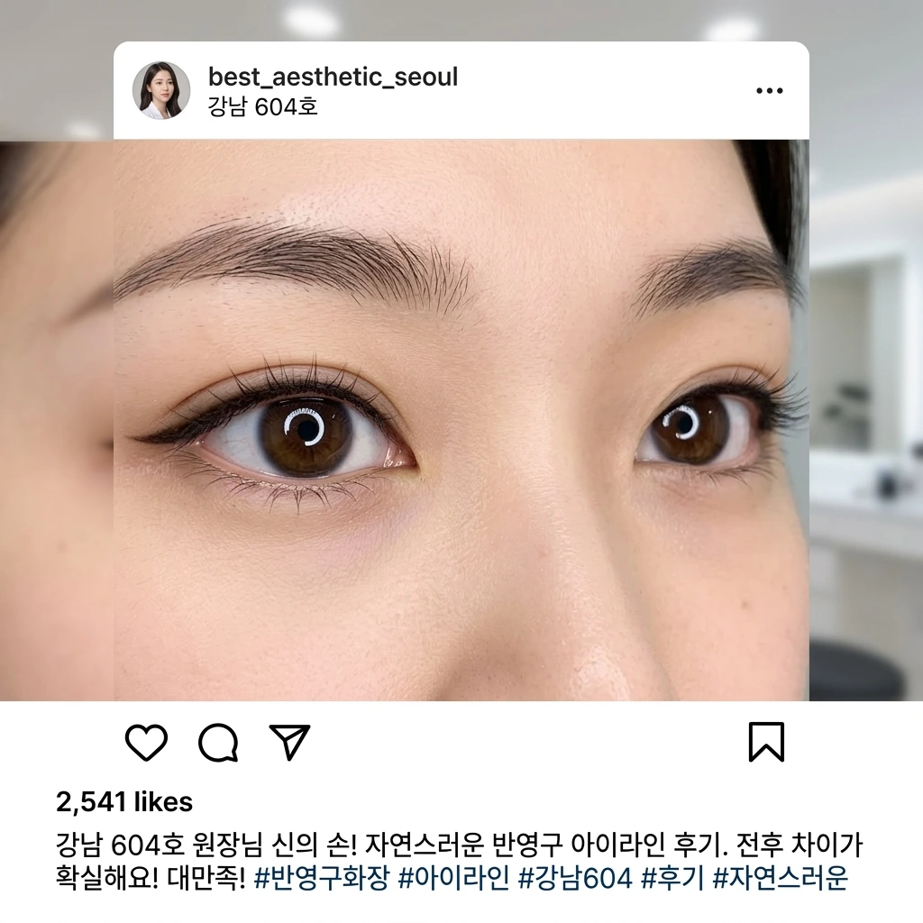 예약 문자에는 상호명 없이 주소만 달랑 적혀 있었다. 강남구 역삼동의 낡은 오피스텔 604호. 지하철역에서 오 분 거리라더니 지도 앱의 붉은 핀이 가리키는 건물은 인스타그램 속 화려한 피드와는 전혀 어울리지 않는 음침한 회색빛이었다. 하지만 시술 전후 사진 속 또렷한 눈매, '원장님 손은 신의 손'이라는 수백 개의 칭찬 댓글이 불안을 억눌렀다.