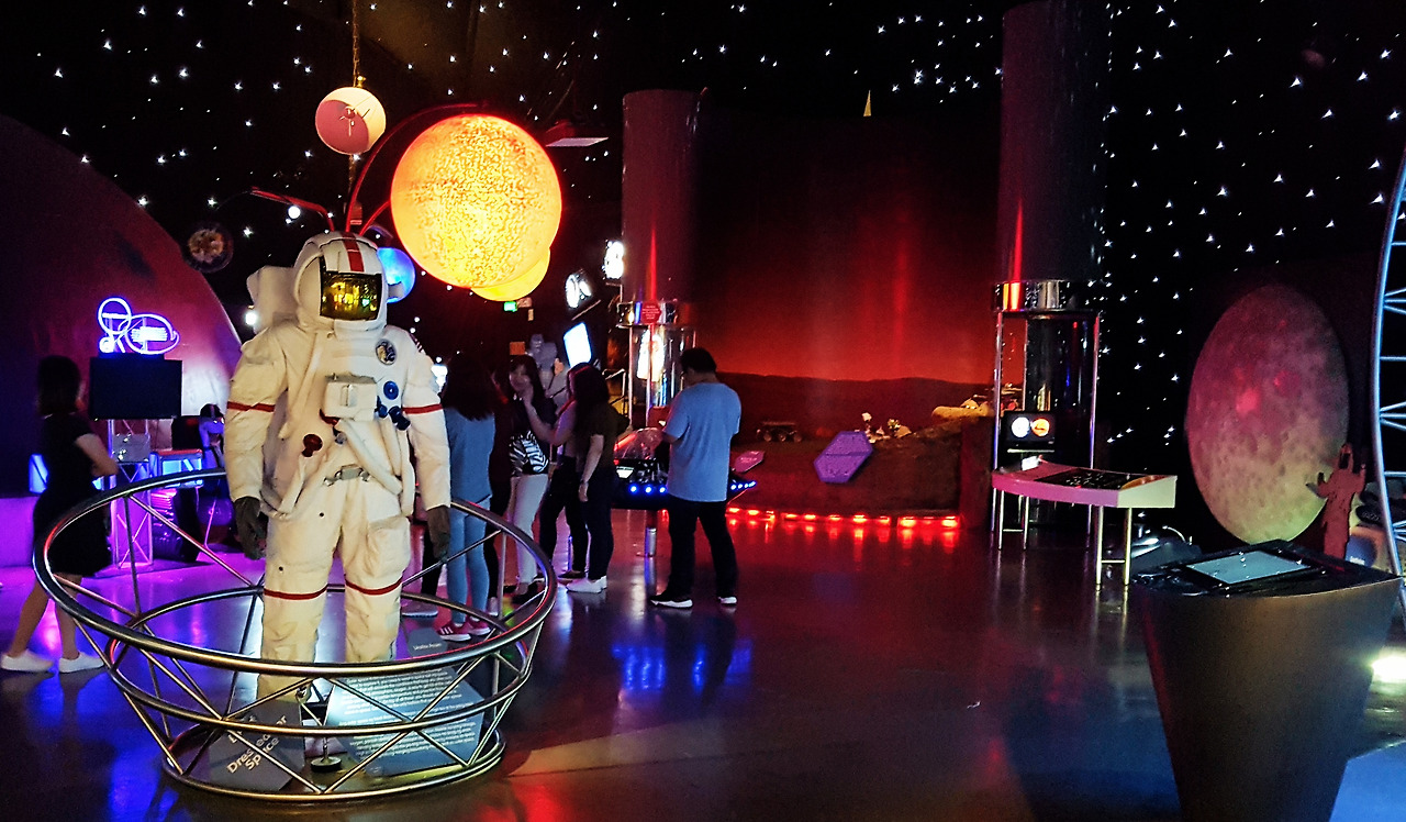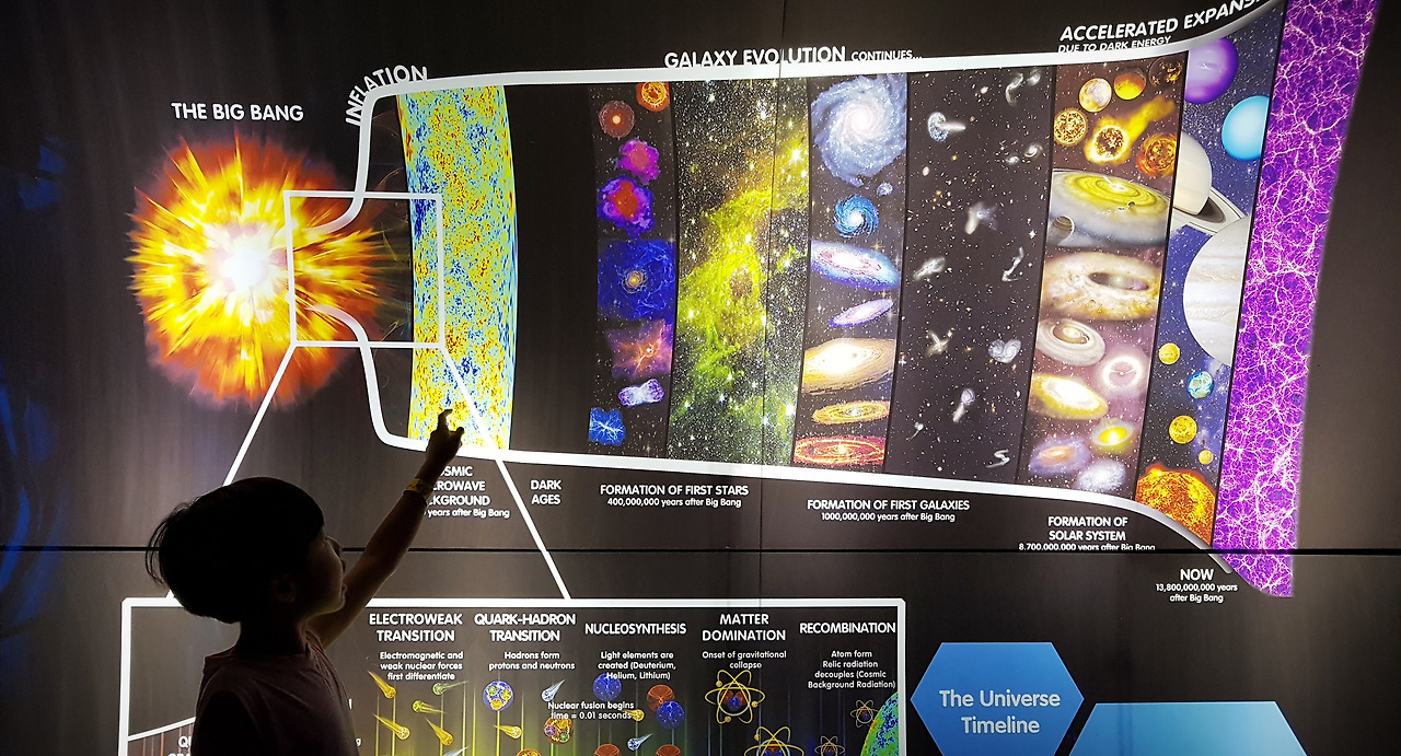 세련된 전시물들은 교육적 성격이 강했는데, 그중에는 별의 탄생과 죽음의 과정을 모형과 함께 자세히 보여주거나, 우주의 생성 원리를 정교한 일러스트를 이용하여 친절하게 잘 설명하고 있었다. 그리고 달이 삭에서 보름달까지 변화하는 원리를 쉽게 이해할 수 있도록 거대한 체험형 설치물이 있었다. 해당하는 시기의 버튼을 누르면 벽에 설치된 큰 달의 빛이 반응하면서 지구에서 관측되는 다양한 모습의 달을 이해할 수 있도록 도와주었다. 아이는 여러 설치물 중에서도 우주의 생성 원리를 설명한 곳에서 오랜 시간을 보냈다. (비록 그곳에 적혀있던 수많은 복잡한 영어 용어는 알지 못했지만) 우주과학에 무심해 보이는 엄마에게 자기가 알고 있는 지식을 나누려고 애썼다.