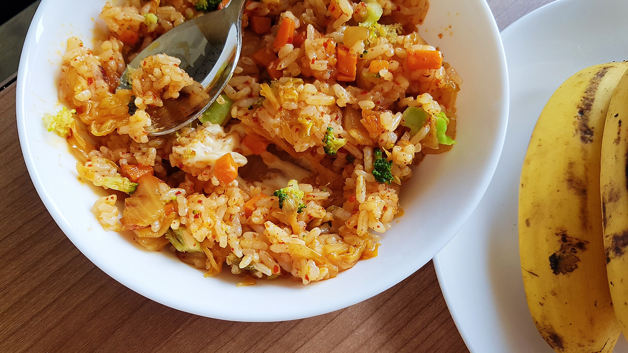 하루는 SM 몰에서 우연히 김치를 발견했다. 유레카! 평소 김치를 즐겨먹는 아이가 아닌지라 혹시 하는 마음에 반찬으로 내놓았더니 '세상에서 가장 맛있는' 김치를 찾았다며 넉살을 떨었다. 아삭아삭한 것이 적당히 맛이 들어 나쁘지 않았다. 그 후 작은 병으로는 흡족하지 않아 큰 병에 담긴 김치를 2병이나 집어왔다. 문제는 같은 상표이었음에도 불구하고 이전에 먹은 것과 맛이 완전히 달랐다. 아마도 유통과정 중에 문제가 있었는지 김치는 식초처럼 심하게 익어 있었다. 가격이 꽤 비쌌기에 아까워서 버릴 수는 없었지만, 그대로 먹을 수 있는 상태도 아니었다. 그때부터 김치로 지지고 볶고, 할 수 있는 짓은 다 했다. 나는 김치찌개를 끓여먹고 아이는 김치볶음밥을 만들어줬다. 김치볶음밥 중간에 슬라이스 치즈를 한 장 넣어줬더니 아이는 엄지를 들어 올려 보였다.