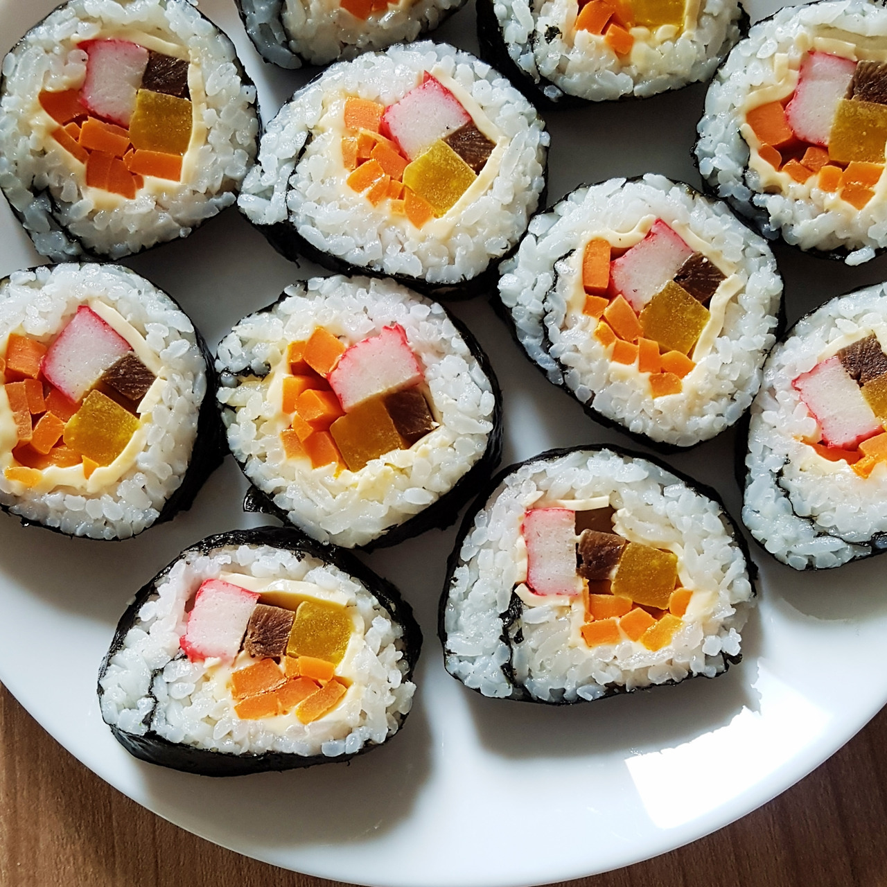 먼저 한국에서 가져온 식재료를 활용했다. 김밥과 유부초밥은 마닐라 체류 초기에 거의 매일 내놓은 끼니였다. 폴폴 날아다니는 쌀알로 초밥과 김밥을 만드는 일이 쉽지는 않았지만 점점 숙련되어갔다. 김밥의 속재료는 한국에서 가져온 단무지와 우엉 외에는 현지에서 모두 조달하였다. 고소한 슬라이스 치즈는 꼭 넣어야 한다는 아이의 요구가 있었다. 그 외에 구운 햄을 넣거나 당근을 올리브유에 볶아서 넣거나 오이를 채 썰어 넣기도 했다. 고맙게도 아이는 남김없이 잘 먹어주었다. 아이가 먹는 모습을 지켜보다가 설거지를 하고 나면 정작 내 끼니를 챙길 생각도 잘 나지 않을 정도로 빈 접시를 닦는 일은 즐거웠다.
