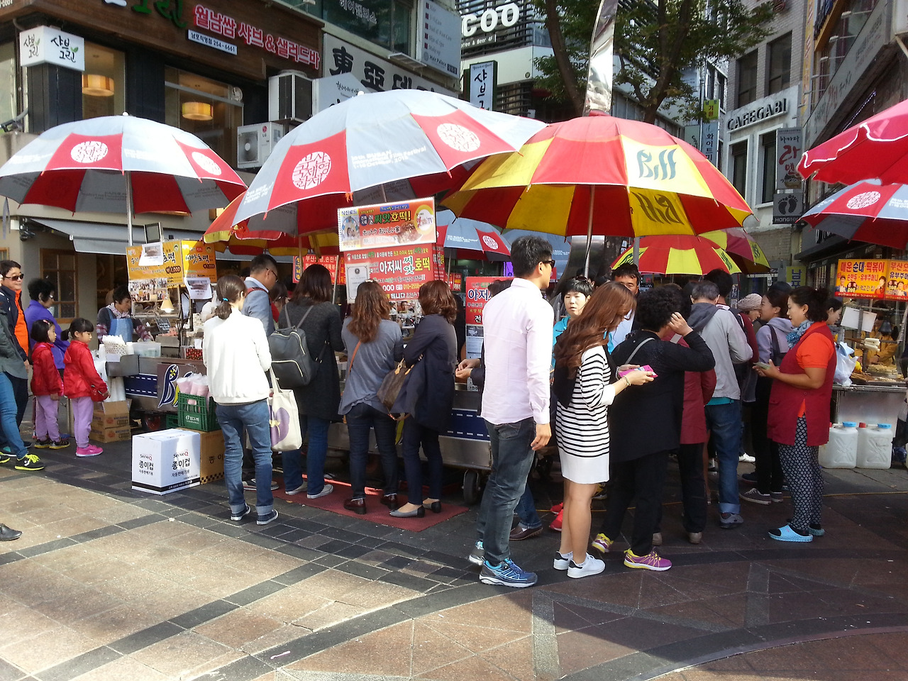 자갈치 시장에서 바다 냄새에 취하고 통로 양 옆에 진열된 싱싱한 어물을 구경하며 항구 도시의 매력을 만끽하였다. 국제시장으로 자리를 옮기니 수많은 가게가 우리를 맞이하고 유독 ‘원조 씨앗호떡’이라는 이름을 가진 가게 앞에만 사람들이 긴 줄을 선다. TV에서 ‘씨앗호떡’을 소개한 후에 나타난 현상이라고 한다. 우리도 인파 속에 묻혀 구입한 호떡을 길에 서서 나누어 먹는데 많이 걸어서 그런지, 별미라서 그런지 알 수 없지만 호떡 맛이 아주 좋았다. 가는 곳마다 각종 진열대와 손님들로 발 디딜 틈도 없다. 유명했던 영화 ‘국제시장’ 촬영지를 끝으로 시장 구경을 마치고, ‘뜰 안에’라는 쌈밥 한정식을 찾았다. 방도 따뜻하고 쌈밥 반찬도 많이 나오는 푸짐한 한정식을 만났다.