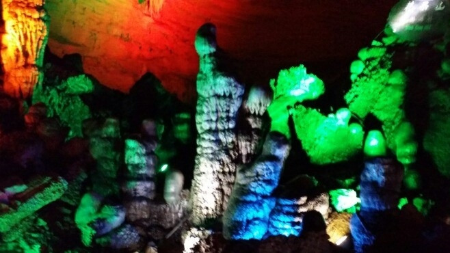 다음은 무능 원구의 용왕동 동굴 관광을 하였다. 입구가 깨끗하게 잘 정돈되어 있다. 입구부터 조각한 듯 석순이 보인다. 전형적인 카르스트 지형으로 하나의 특대형 석회암 카르스트 동굴로서 형성된 시점은 3억 8천만 년 이전이다. 용왕 동굴은 현재 3.5km밖에 개발하지 못하였으며, 총길이의 9분의 1에 해당한다. 시원한 동굴에서 계단을 오르내리면서 신기한 모습에 취해 시간을 보냈다.