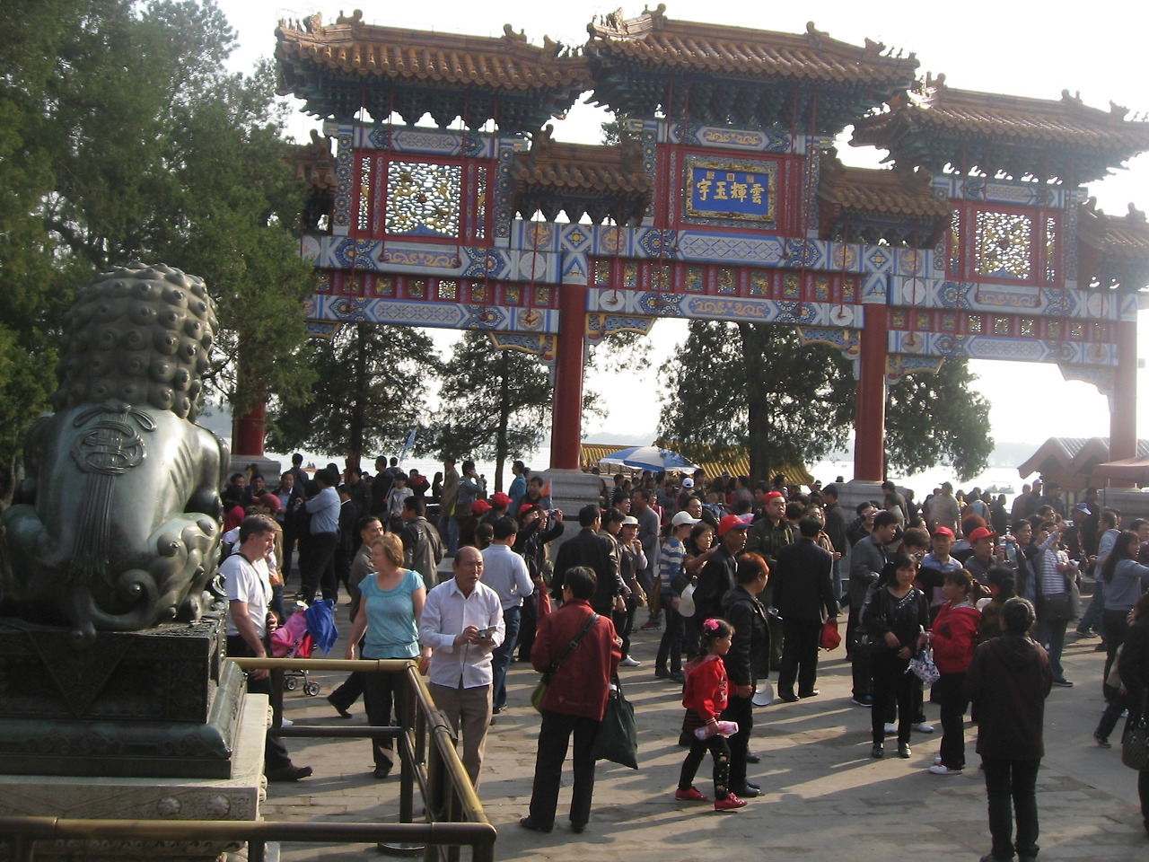 이화원의 인파 속에서 사람들부터 구경하였다. 이화원 관람을 원하는 관람객이 연휴에는 80만 명이 넘어 포화 상태에 이르자 입장을 통제하였다고 한다. 우리가 찾은 날은 평일인데도 많은 사람들이 줄을 이어 8만 명을 넘었다. 역사가 살아서 그 후손들에게 돈을 벌어주고 있다. 이화원은 북쪽의 만수산과 남쪽의 곤명호로 이루어져 있다. 총면적은 약 3.7km로서 4분의 3을 수면이 차지하고 있다. 만수산은 본래 옹산이라 하였다. 남쪽의 곤명호는 본래 ‘서호’라 하였으나 건륭 15년에 현재의 이름으로 고쳤다. 서쪽에 서태후가 거처하던 낙수당이 있고 그 당전은 큰 암석으로 장식되어 있다. 낙수당에서 서쪽으로 장랑이 있고 동쪽의 격월문에서 서쪽의 석장정까지 728m이다. 1998년 유네스코 지정 세계문화유산이다. 완전한 형태로 잘 유지된 황족 정원이며 서태후의 여름 별장으로 더 유명하다. 이화원은 살아 있는 중국의 역사다.